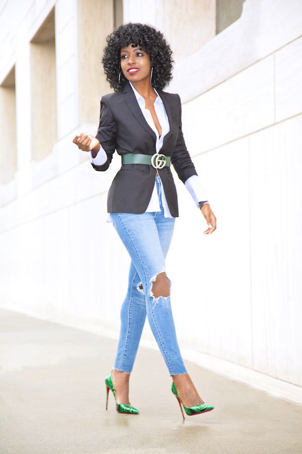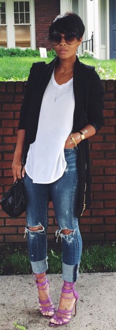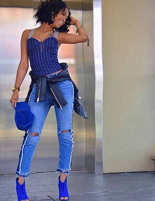 Contrast the distressed nature of ripped jeans with more polished and structured pieces. Opt for a tailored blazer, a crisp button-down shirt, and sleek heels. This juxtaposition creates a stylish and sophisticated outfit suitable for a casual office setting or a brunch date.