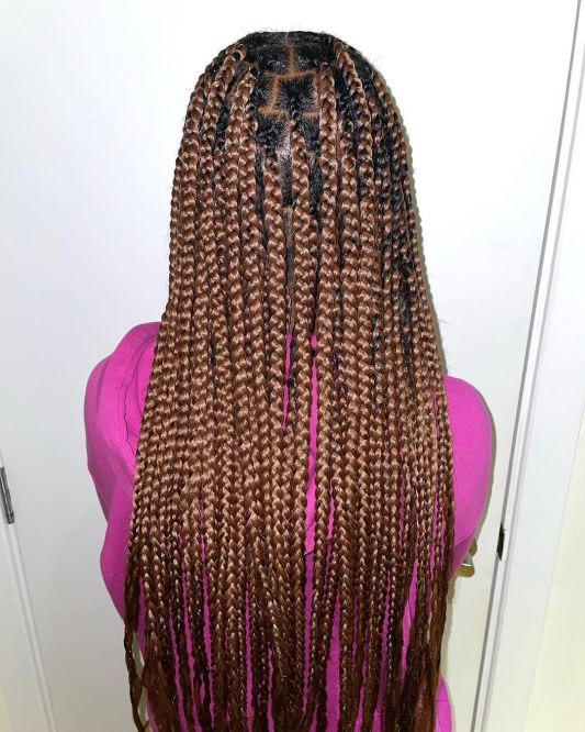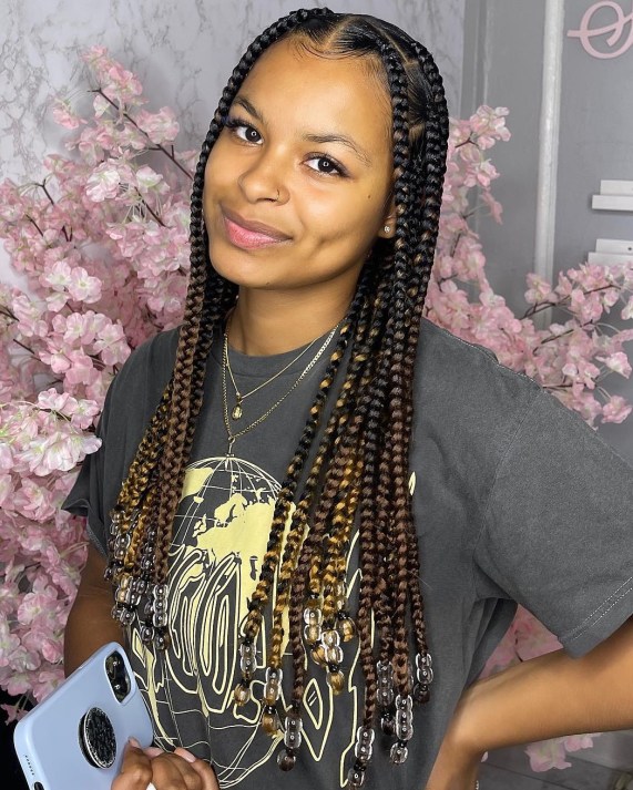 - Ombre Knotless Braids: This style flawlessly merges two or more colors, giving your braids a vibrant gradient effect.