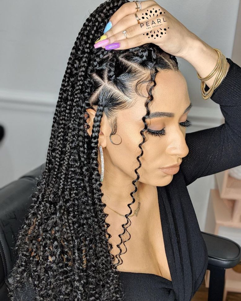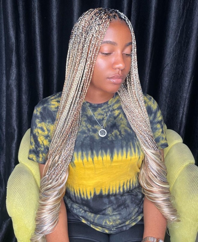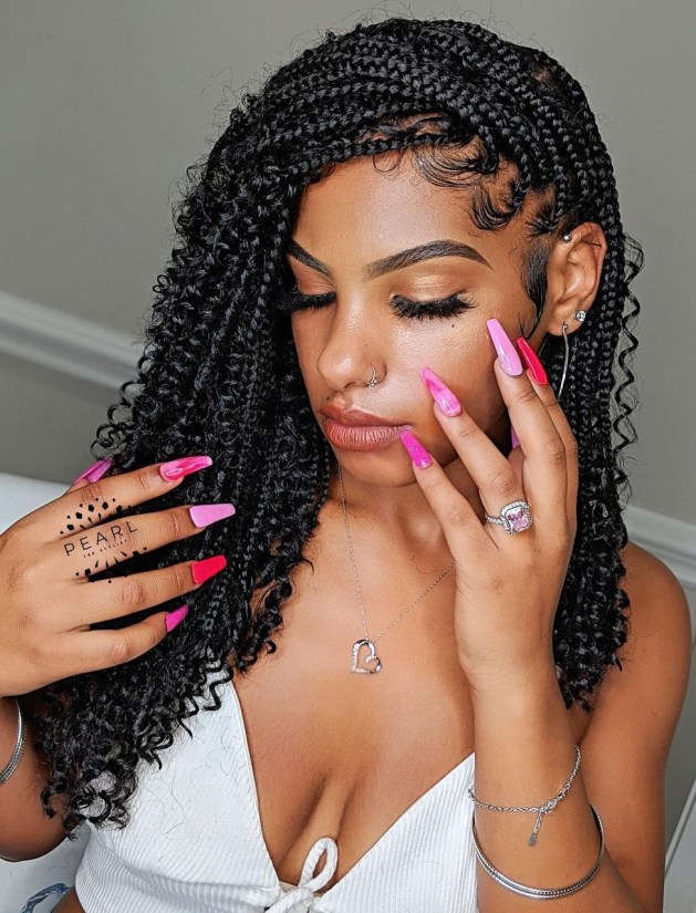 - Curly-tip Knotless Braids: Add a playful twist with curly ends. This can be achieved by curling the synthetic hair tips with rollers and dipping them in hot water.