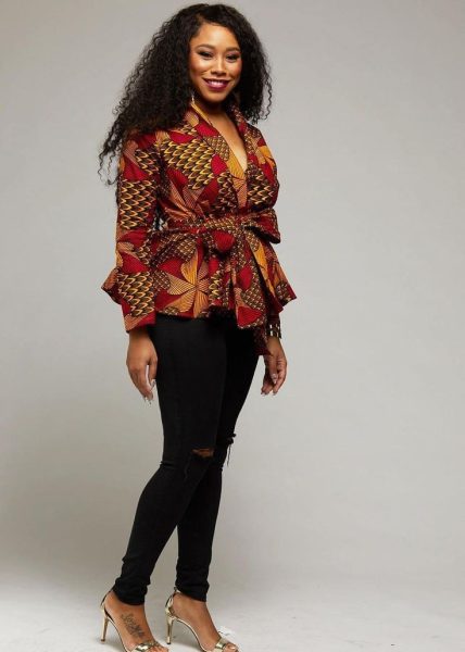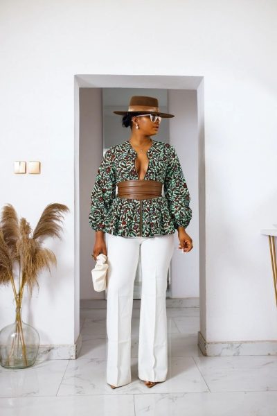 - Belted Beauty: A peplum jacket cinched at the waist with a belt, either of the same Ankara fabric or a contrasting material like leather.