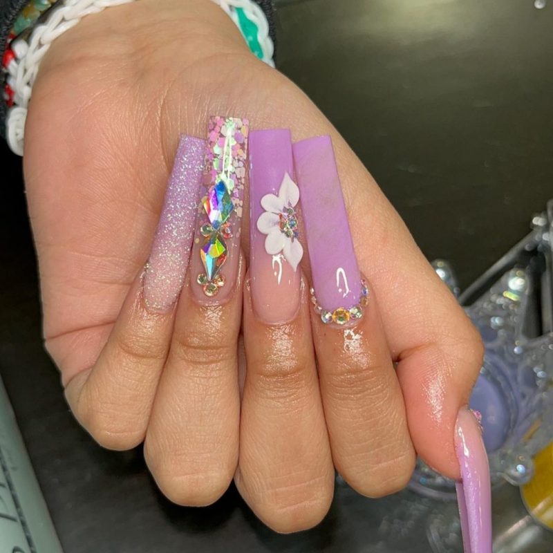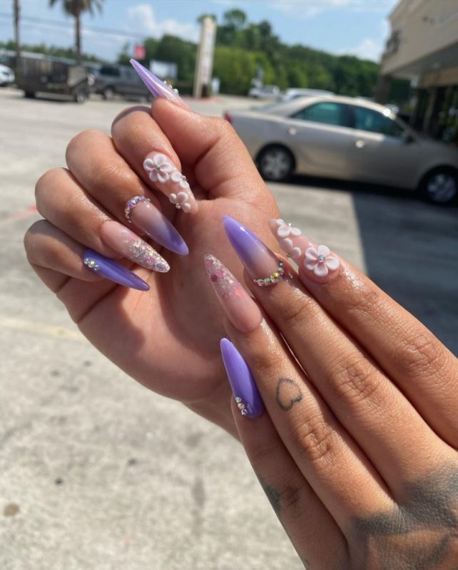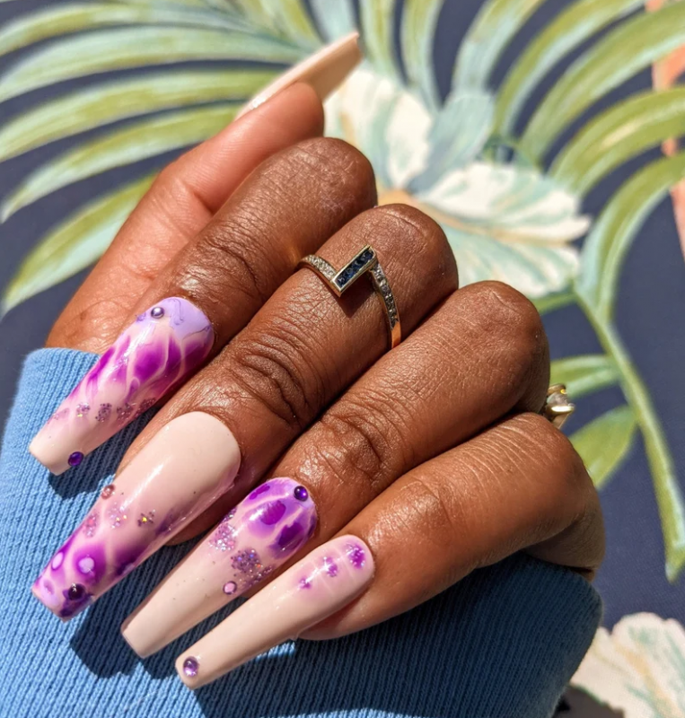 In this compilation, we’ll be turning the spotlight on purple nails that you can rock for all seasons and to match any occasion with french tips, floral, animal print, abstract art, and rhinestone-decorated designs all making the cut.