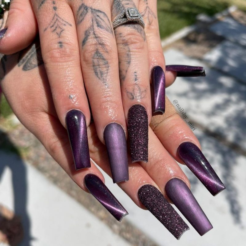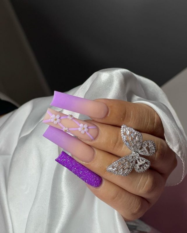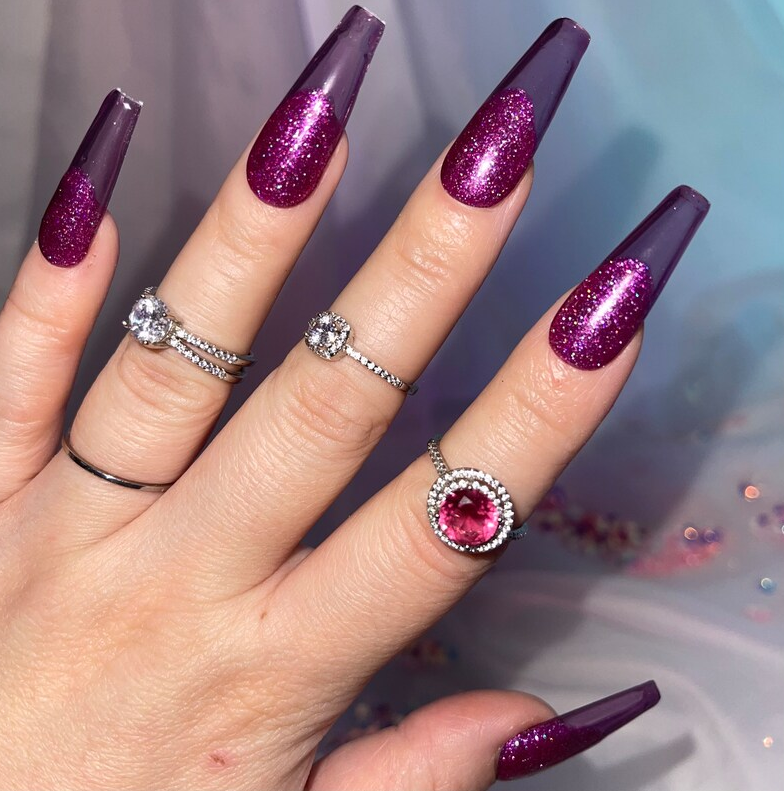 I’ve made room for unconventional styles as well to spice things up a bit. Ever heard of geometric gradient nails? If you love surprises and all things beautiful, then you’re right where you should be. Here are trendy purple nail designs you need to see.