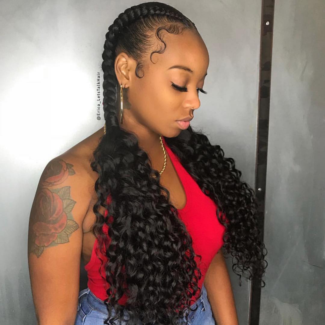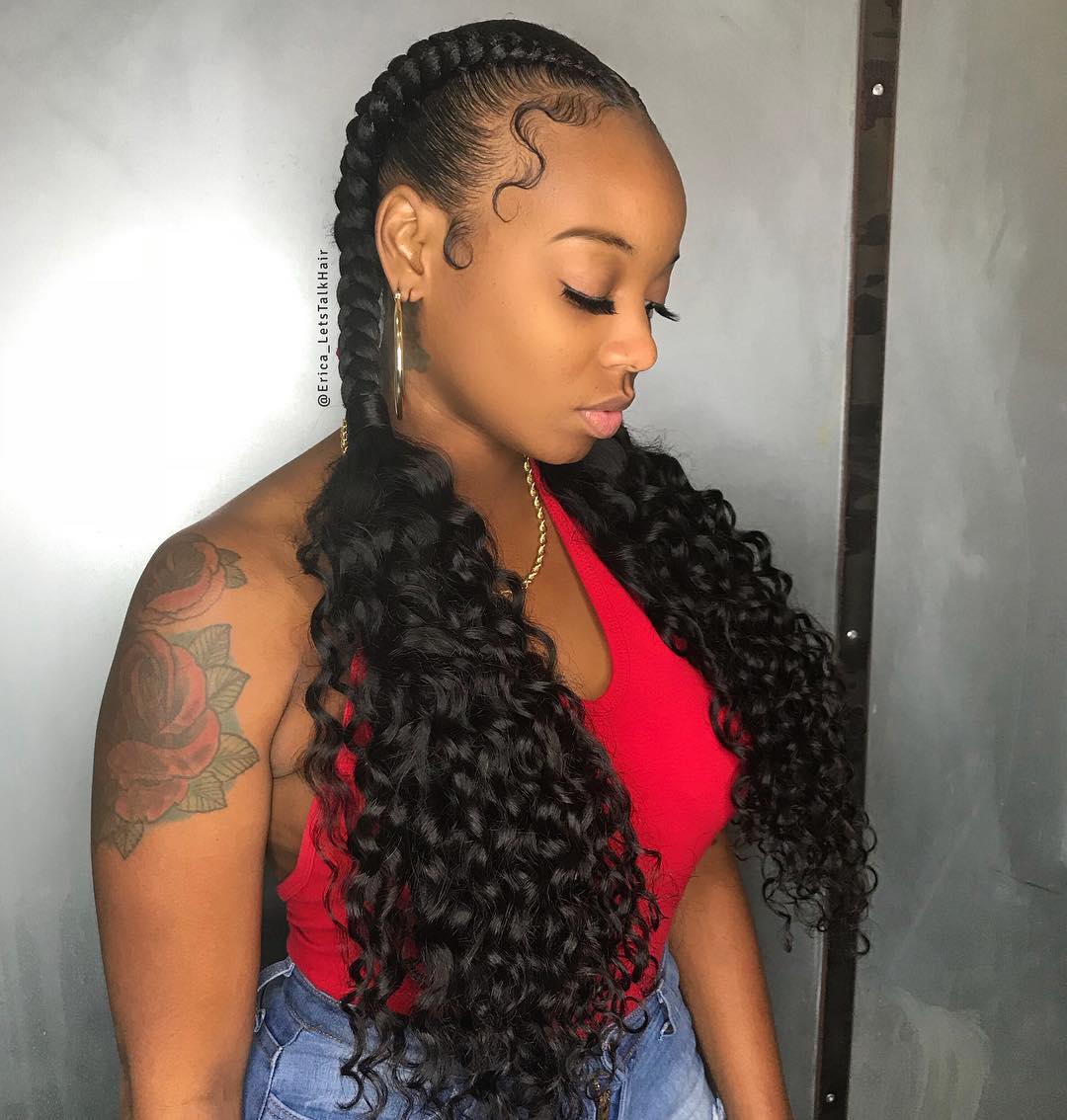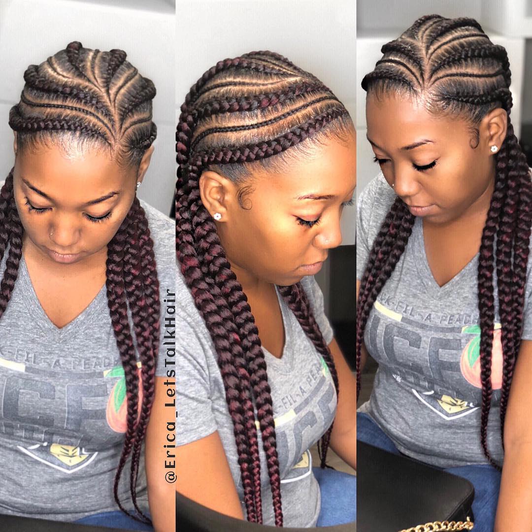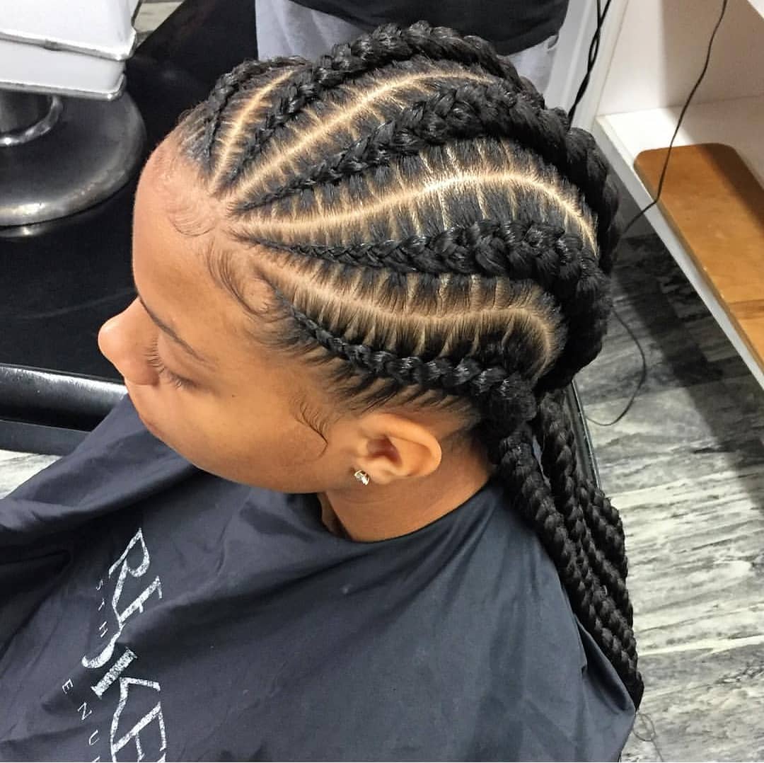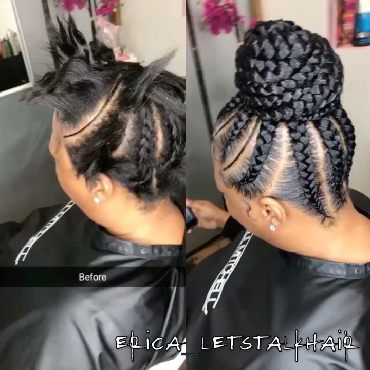 Instead of the usual straight-back style, direct the braids to one side of the head, culminating in a side-swept look. It’s a touch of modern to the classic style.