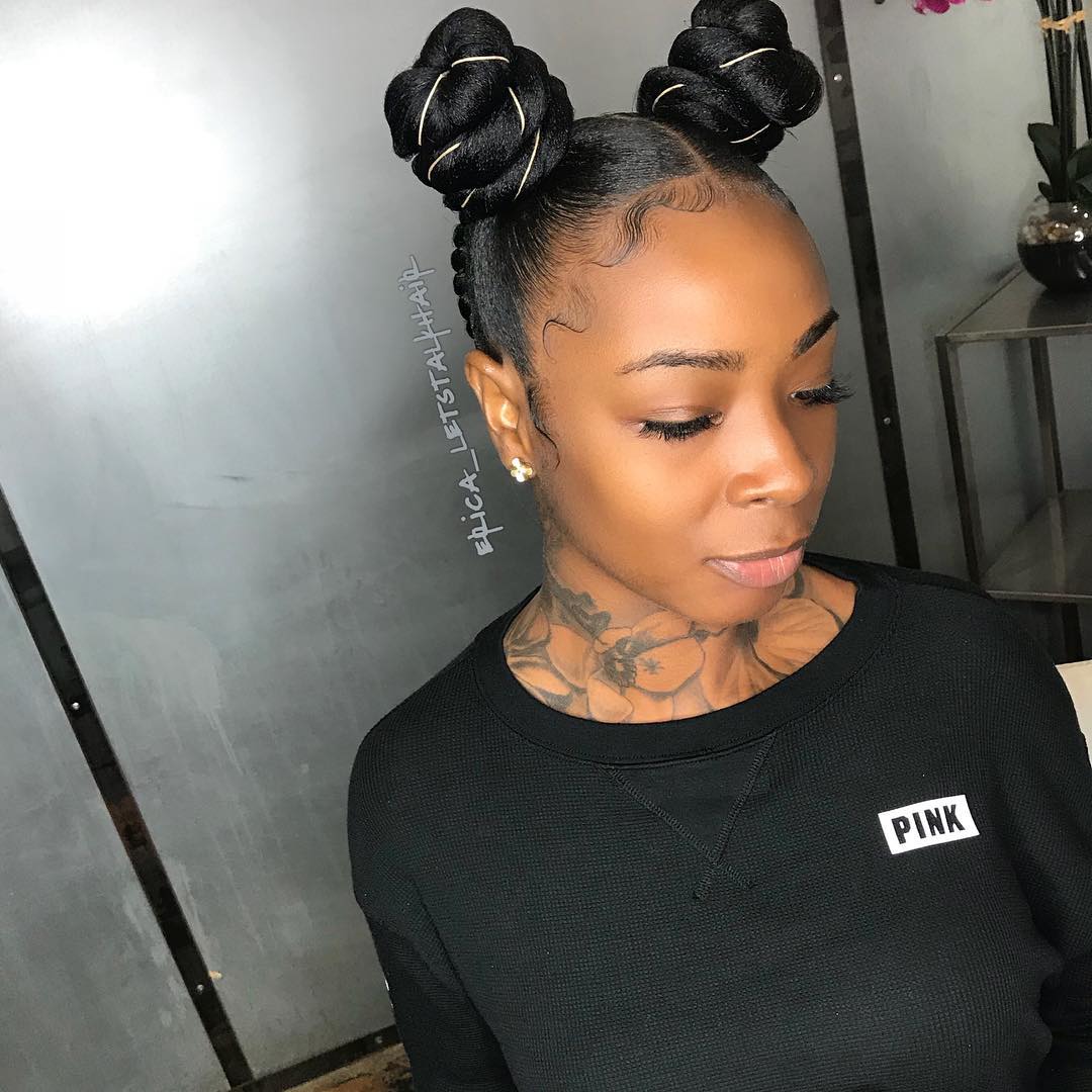 Turn the braids into one or two buns on the head. It’s chic, keeps the hair away from the face, and is perfect for warmer weather.