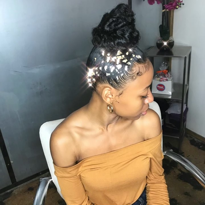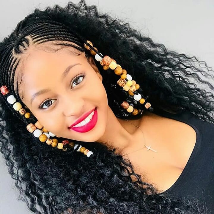 Combine the neatness of Ghana braids at the top with the freedom of a natural afro at the back. It’s a style that screams confidence and lets her flaunt her natural curls.