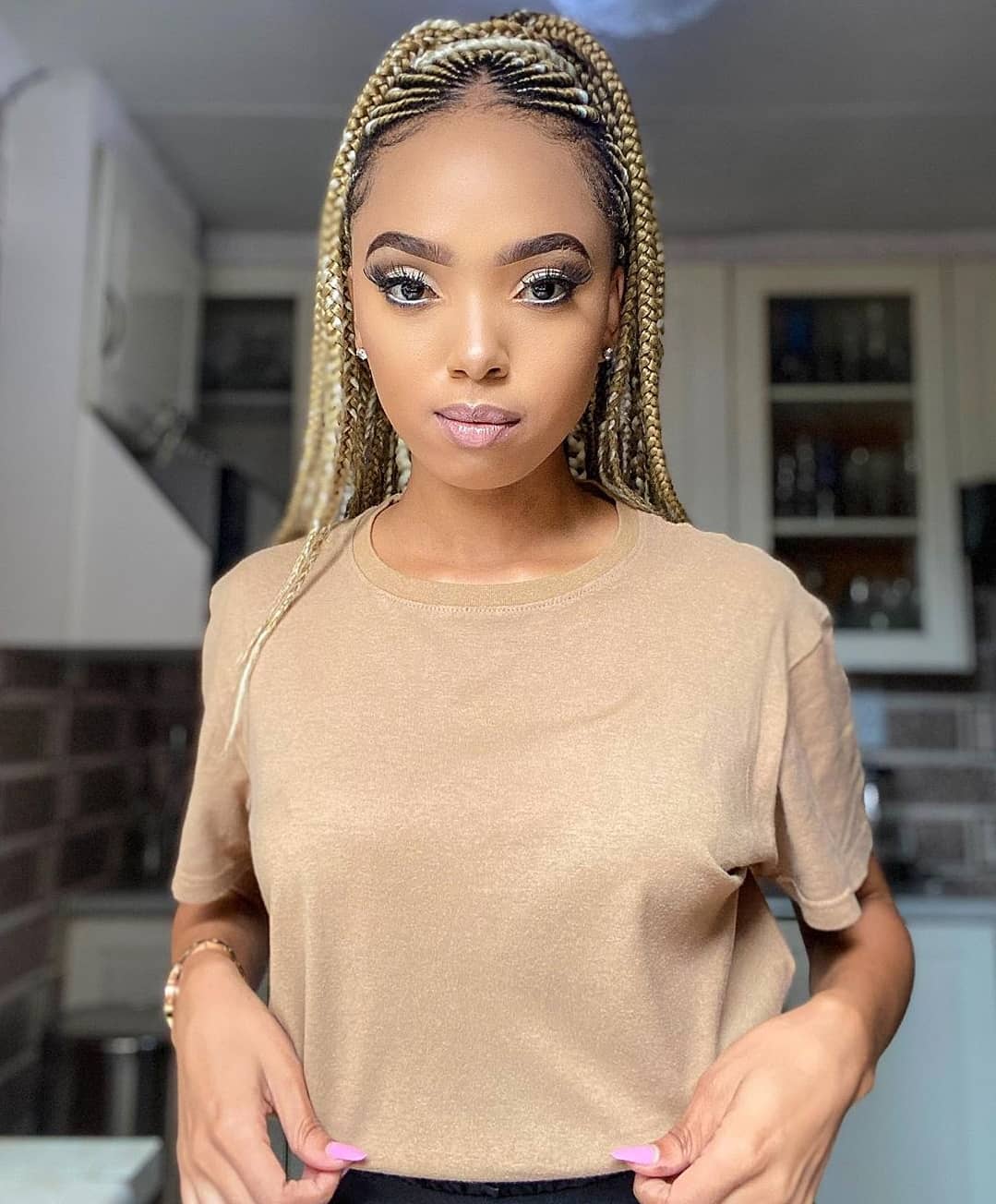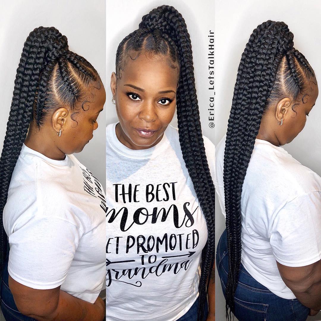 Weave the braids into a high ponytail. Not only does it keep the hair off the face, but it also gives a young and refreshing vibe. Perfect for sports days or summer outings!