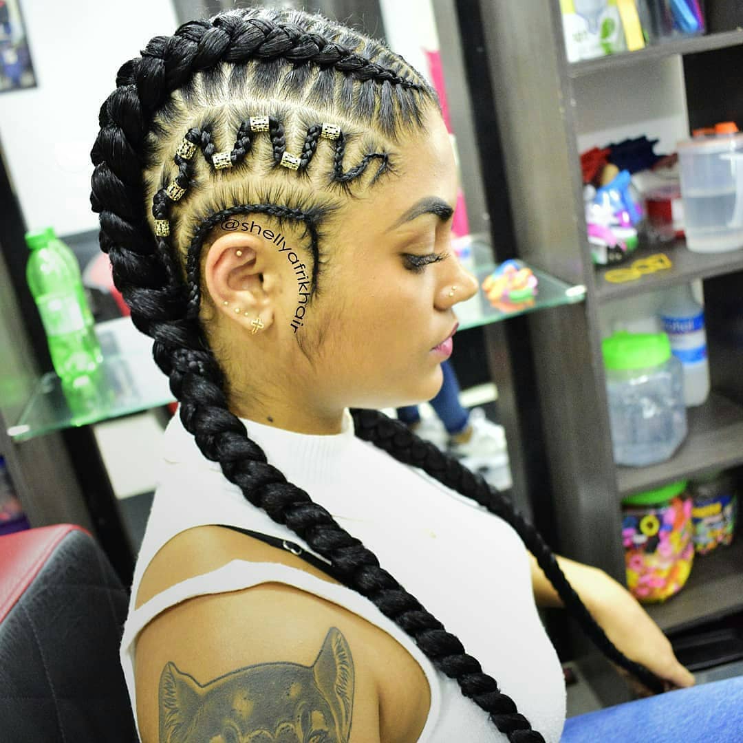 Integrate beads, hair rings, or cowrie shells at the ends of the braids or sporadically throughout. It adds an element of cultural pride and beauty to the hairstyle.