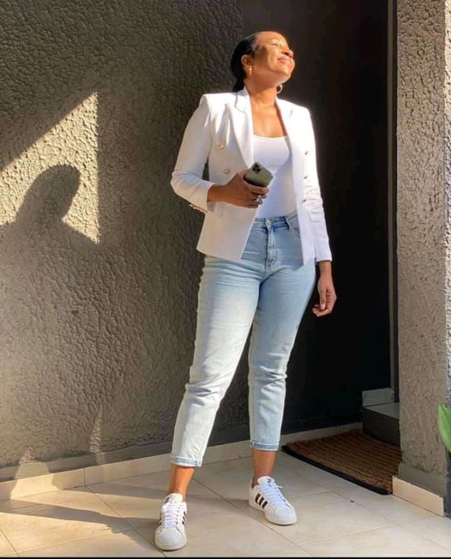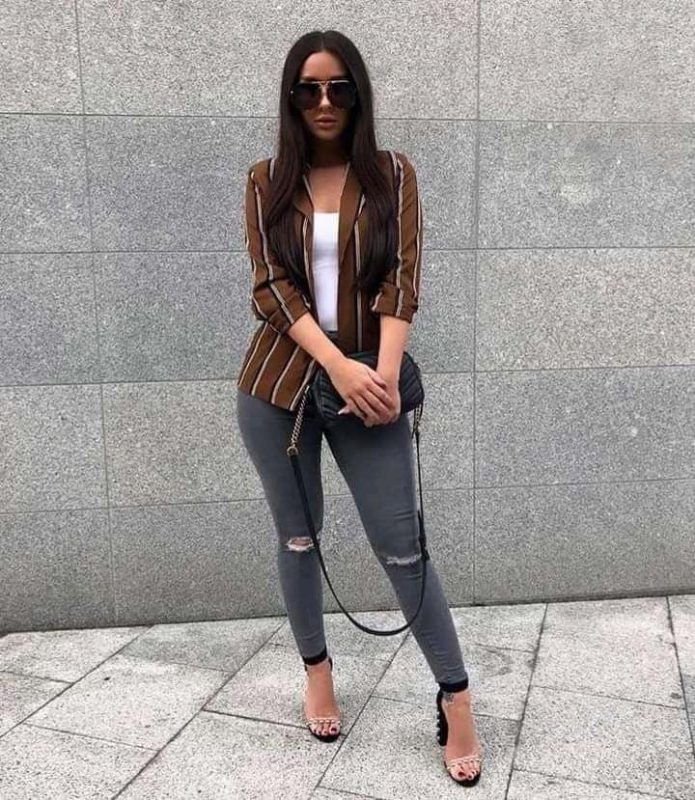 For a laid-back yet stylish look, pair a classic denim jacket with a crisp white t-shirt and distressed jeans. This combination exudes a cool and casual vibe that is perfect for weekend outings. Complete the outfit with sneakers or ankle boots and add a few accessories like a statement necklace or a crossbody bag to elevate the look.