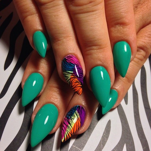 10. Neon geometric: Use bright neon colors to create a geometric pattern on your nails for a bold and modern look.