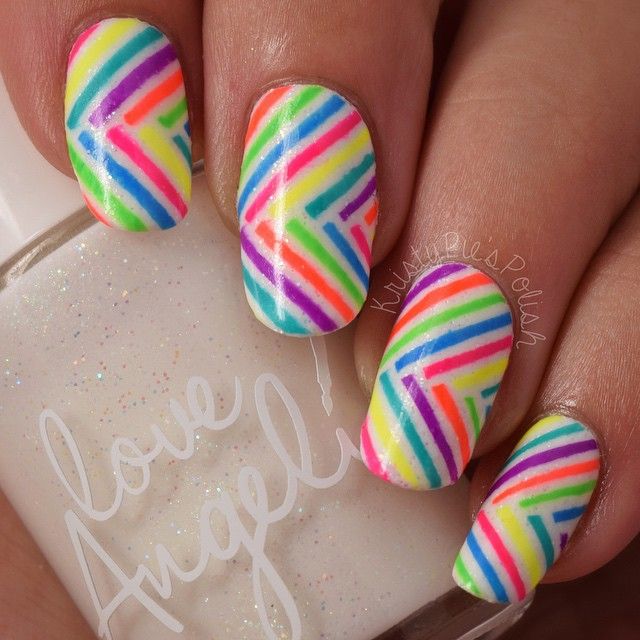 4. Rainbow stripes: Use a variety of bright colors to create stripes on your nails for a happy and colorful look.