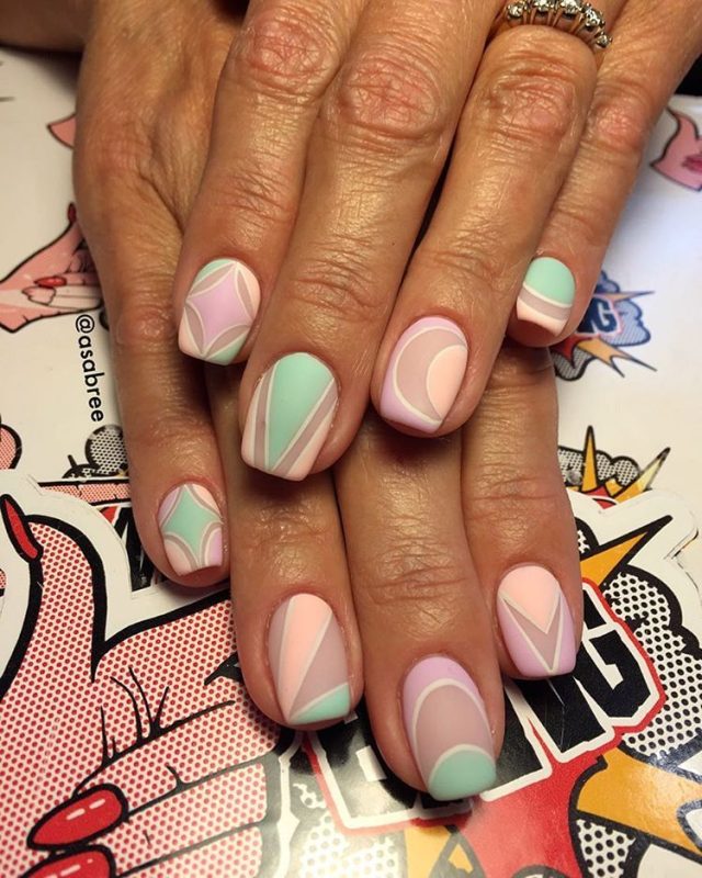 6. Pastel polka dots: Use pastel shades of pink, purple, blue, and green to create a playful polka dot pattern on your nails.
