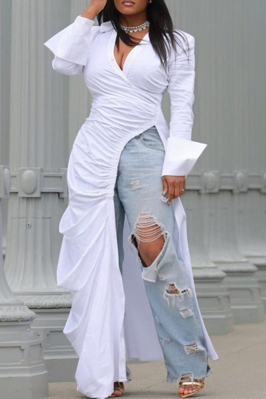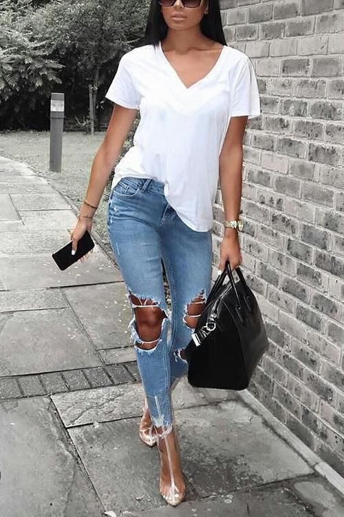 1. Classic Denim and White Shirt: Embrace the timeless combination of a crisp white shirt paired with your favorite jeans. This ensemble exudes sophistication and can be dressed up or down depending on the occasion. Add a statement belt and some heels for a more polished look, or opt for sneakers and a denim jacket for a casual twist.