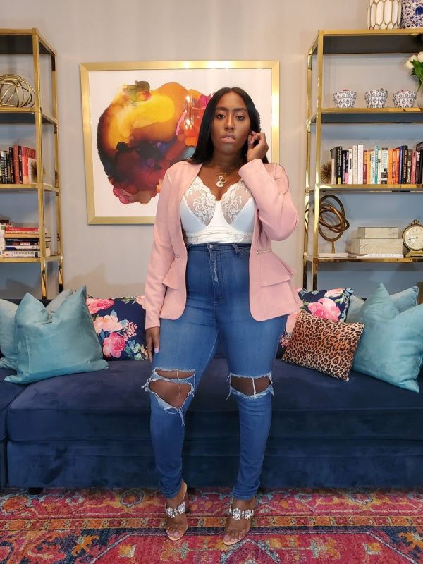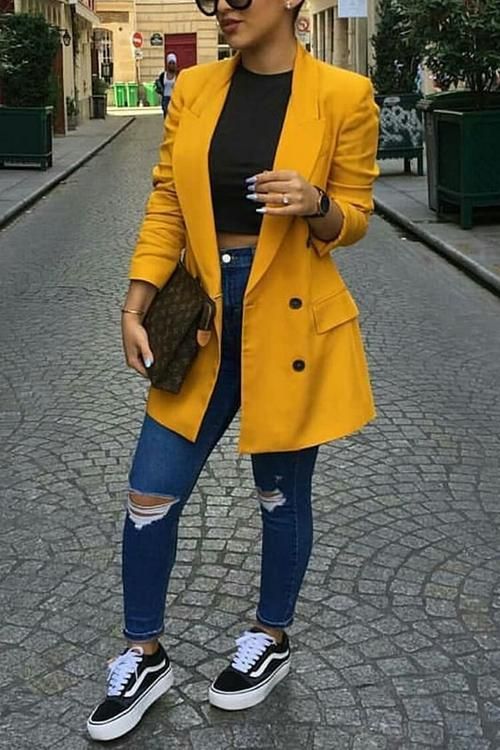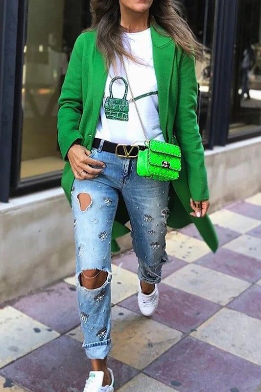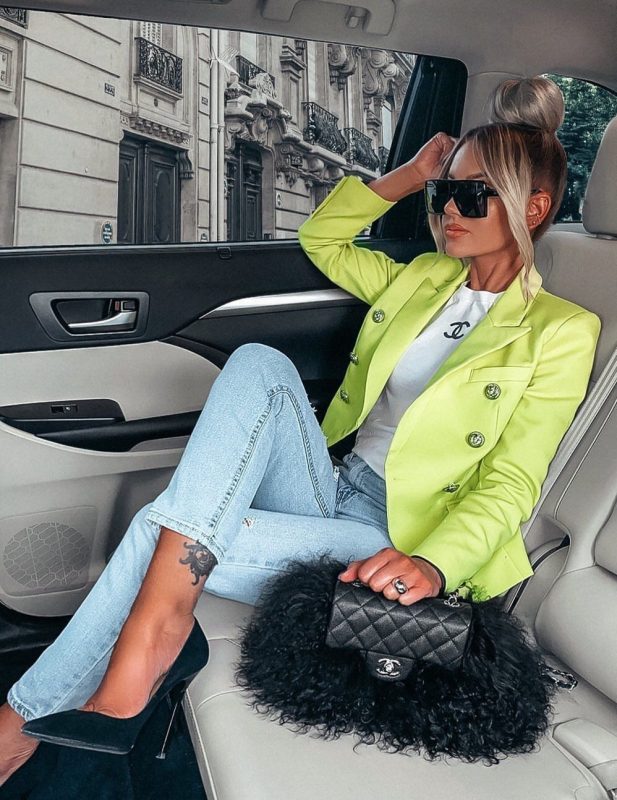 3. Effortlessly Chic with a Blazer: Elevate your jeans outfit by adding a tailored blazer. This combination strikes the perfect balance between casual and sophisticated. Choose a fitted blazer in a complementary color and pair it with your favorite jeans and a simple top. Finish off the look with heels or loafers for a polished touch.