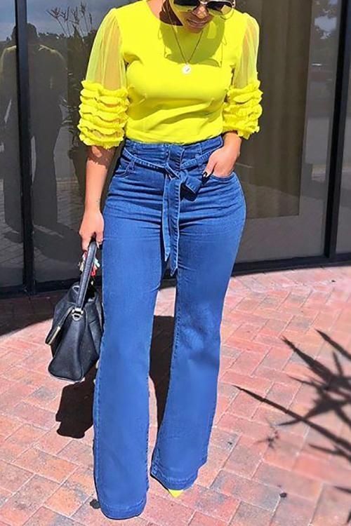 7. Dress it up with Heels: Transform your jeans into an evening-ready ensemble by adding a pair of heels. Whether it’s stilettos, block heels, or wedges, heels instantly elevate the look and add a touch of glamour. Pair your jeans with a stylish blouse or a sequined top for a night out or a special occasion.