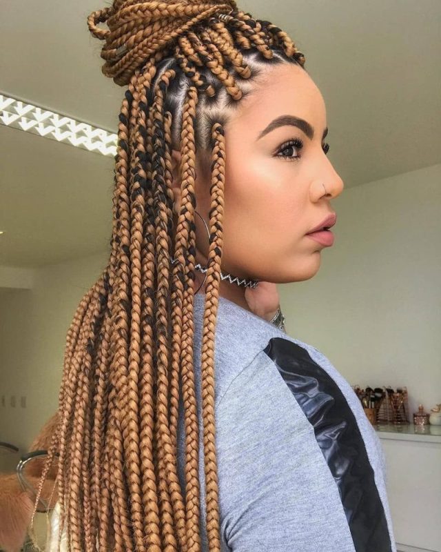 1. Box Braids: Box braids are one of the most iconic and versatile African braided hairstyles. They are created by sectioning the hair into small square or rectangular parts and braiding extensions into the natural hair. Box braids can be styled in various lengths, thicknesses, and colors, allowing for endless creativity.