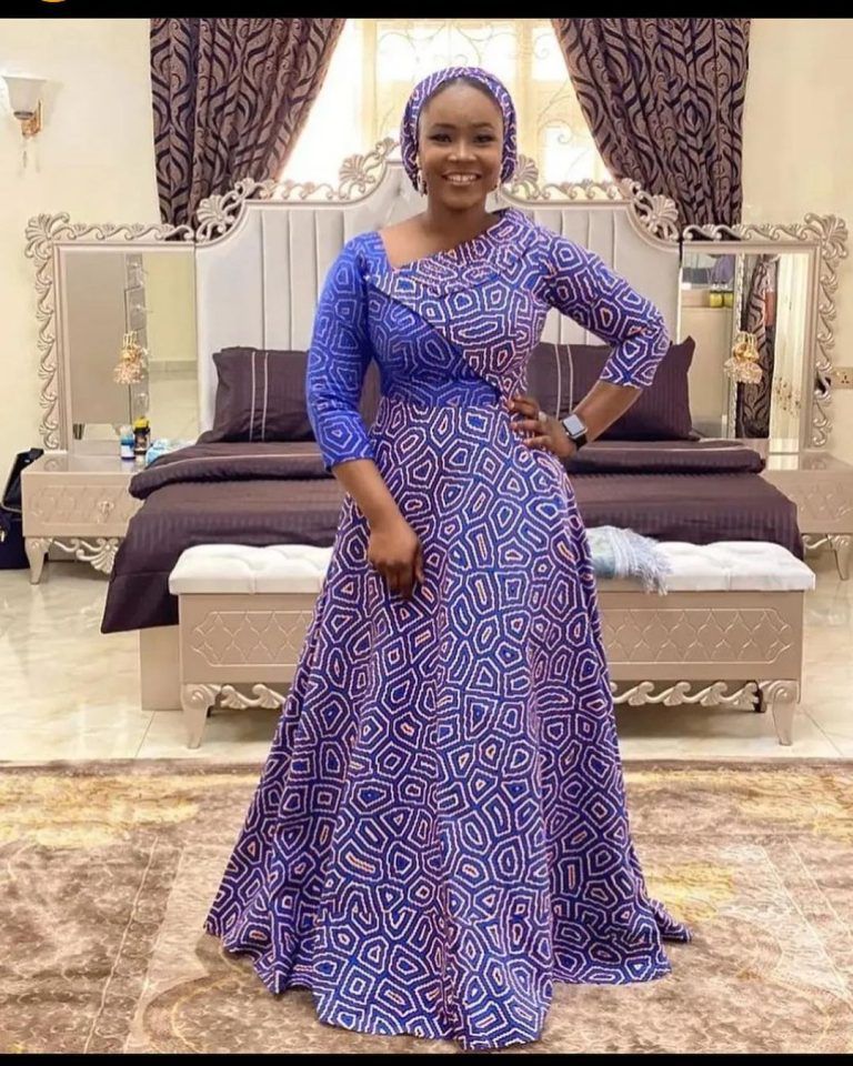 5. Asymmetric Gown: Experiment with asymmetric designs by choosing an Ankara long gown with an uneven hemline or one-shoulder detail. This creates an eye-catching and unique look that stands out from the crowd.