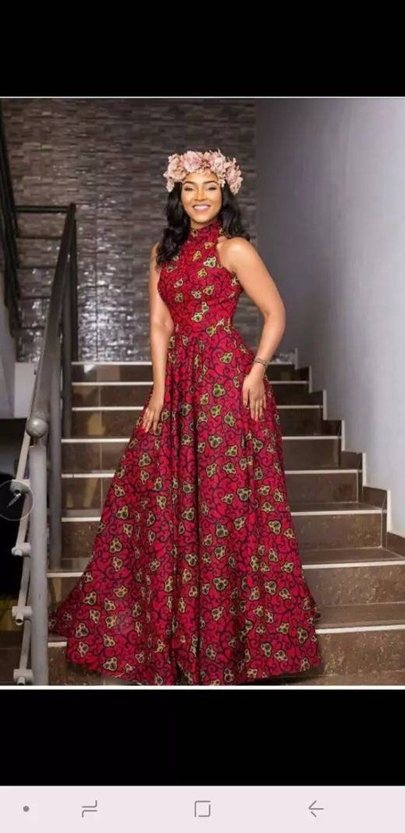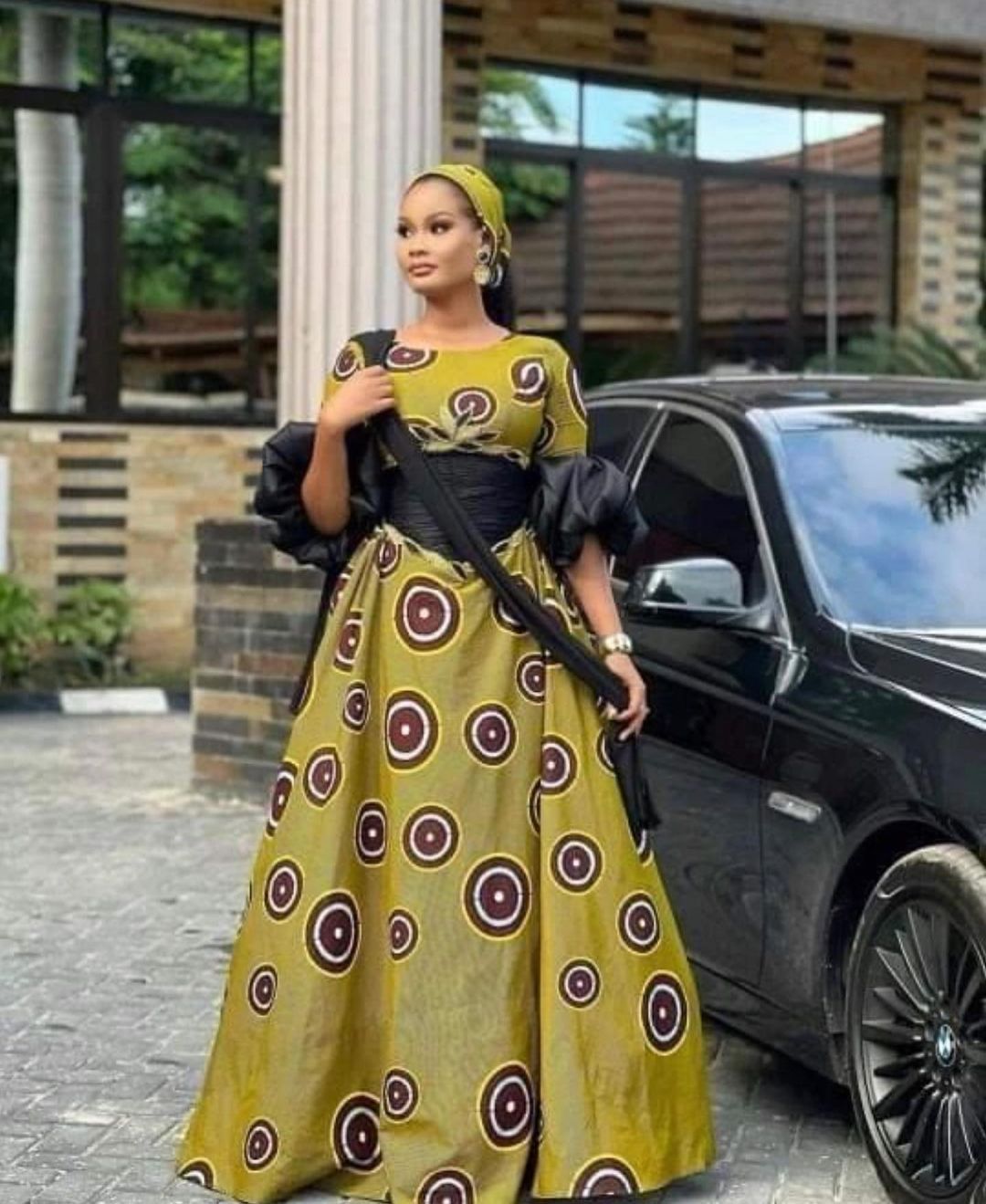 1. Floor-Length Flared Gown: Opt for a floor-length flared gown with Ankara fabric for an elegant and regal look. This style gives a beautiful silhouette and can be accessorized with a statement belt to accentuate the waist.