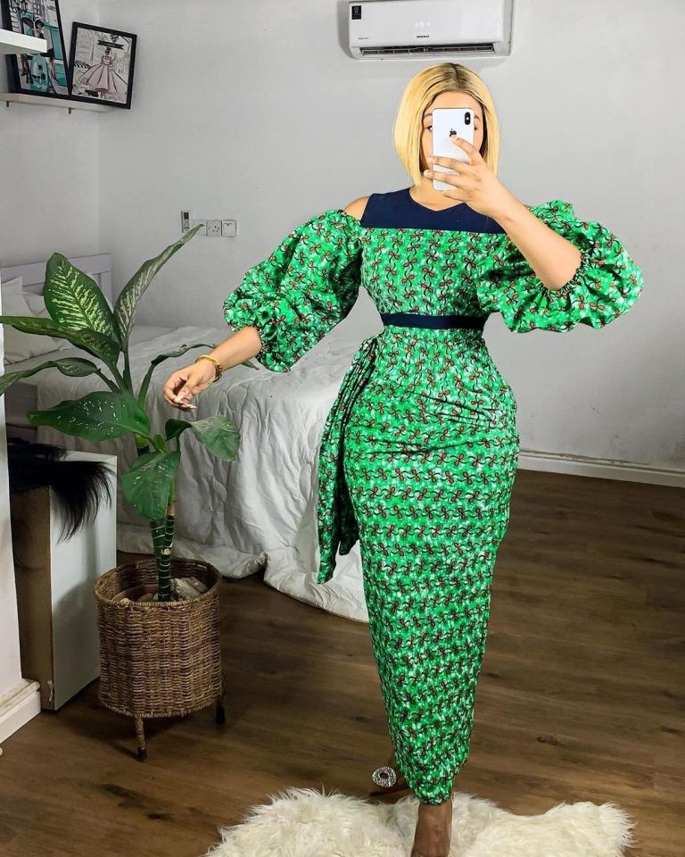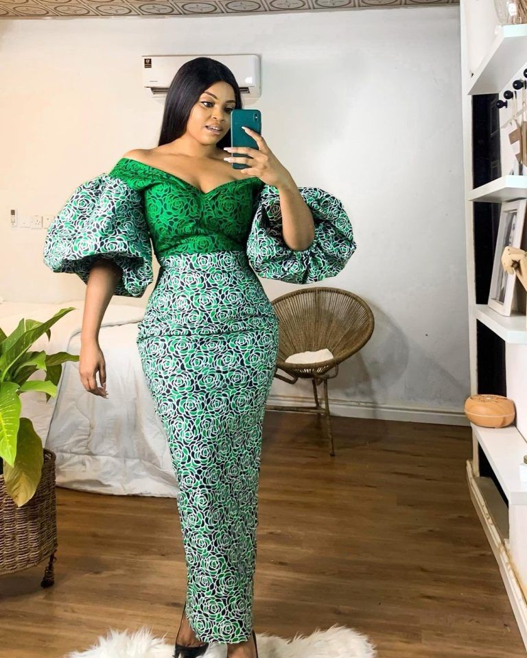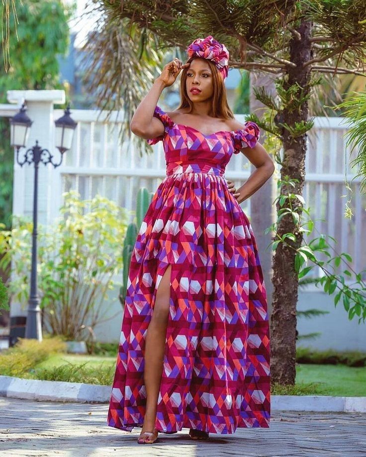 2. Off-Shoulder Maxi Gown: Embrace the off-shoulder trend with an Ankara maxi gown. This style adds a touch of romance and sophistication to your look, and you can choose a variety of sleeve designs to suit your preference.