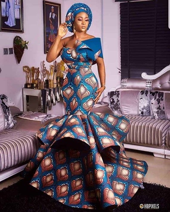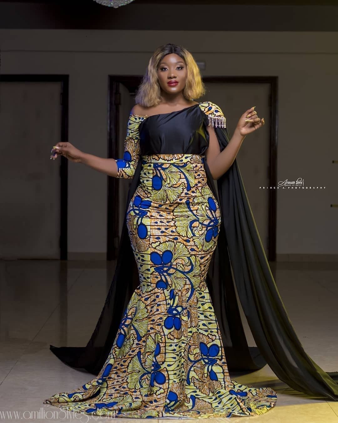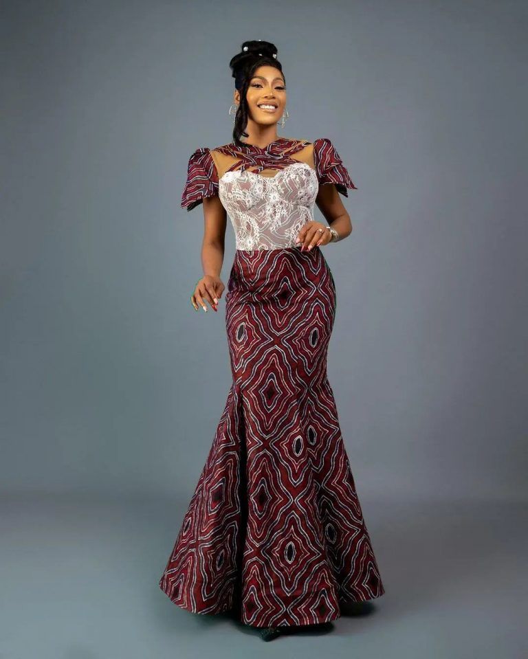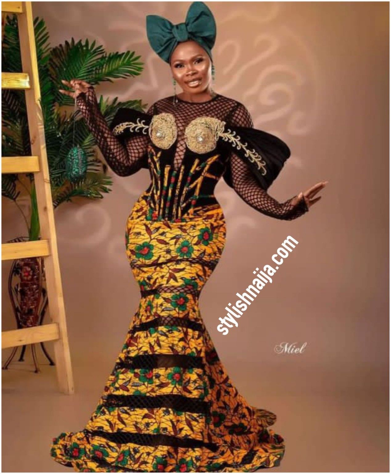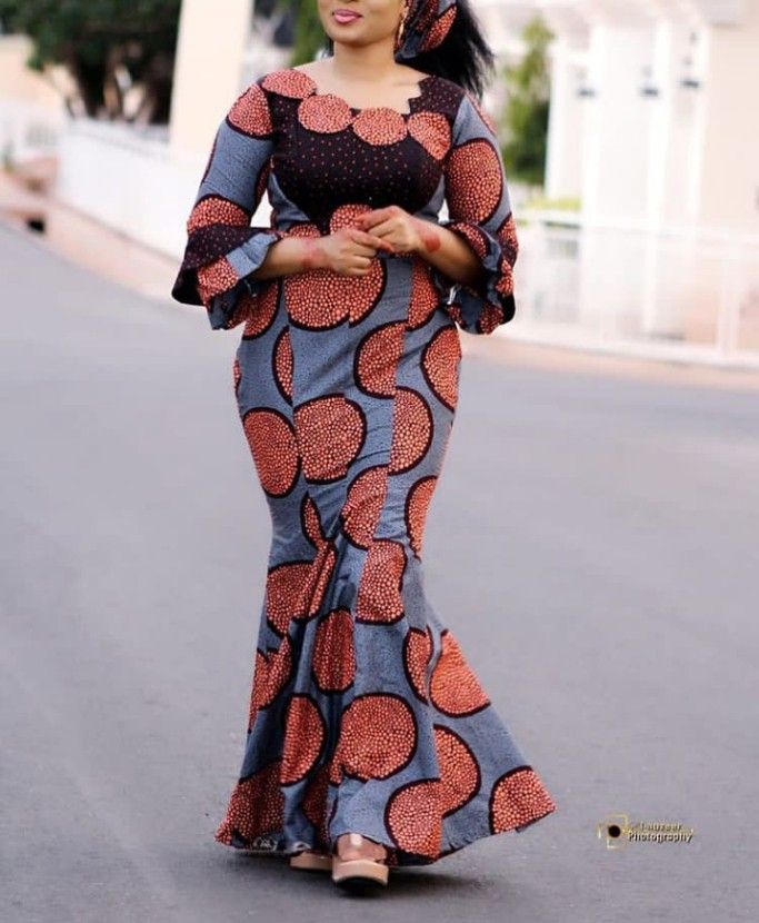 3. Mermaid Gown: For a more fitted and glamorous look, consider a mermaid-style Ankara gown. This style hugs the body and flares out at the bottom, creating a stunning hourglass silhouette.