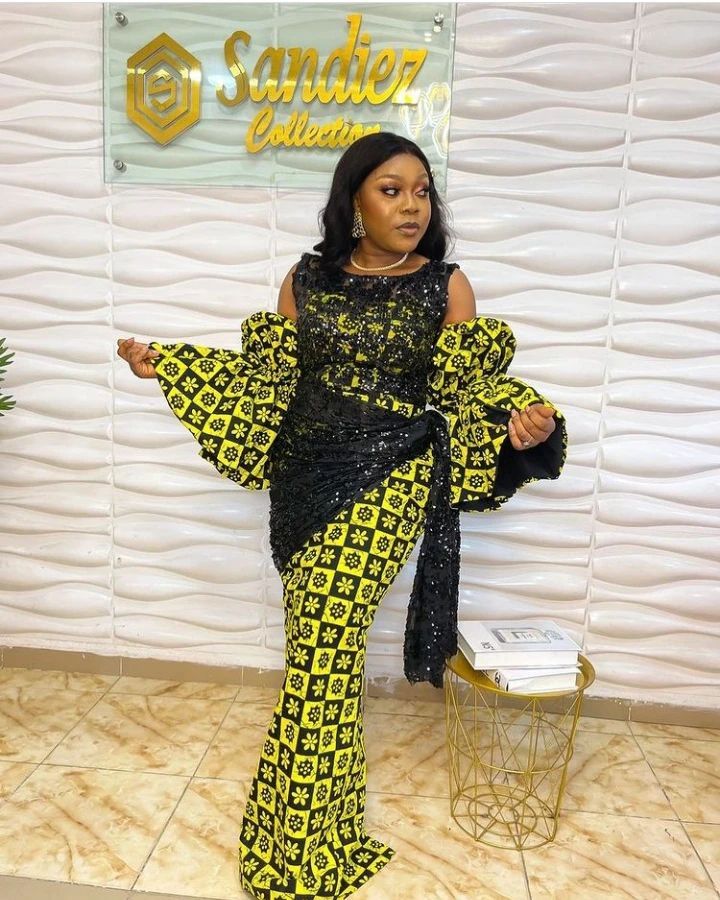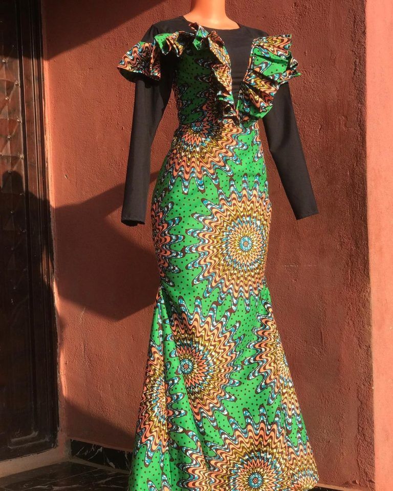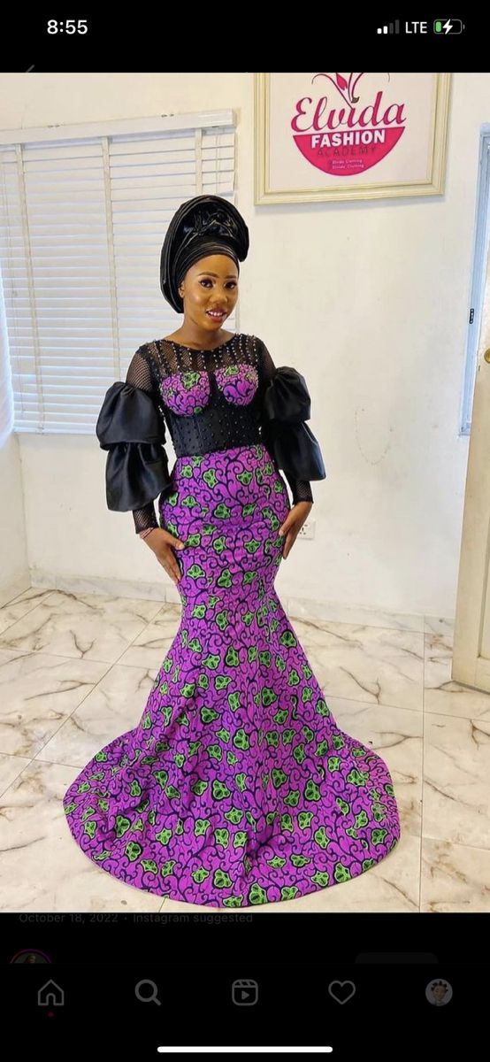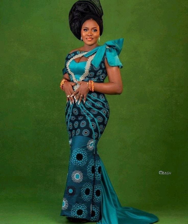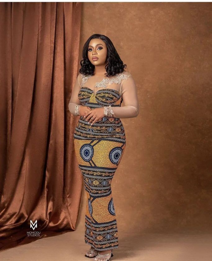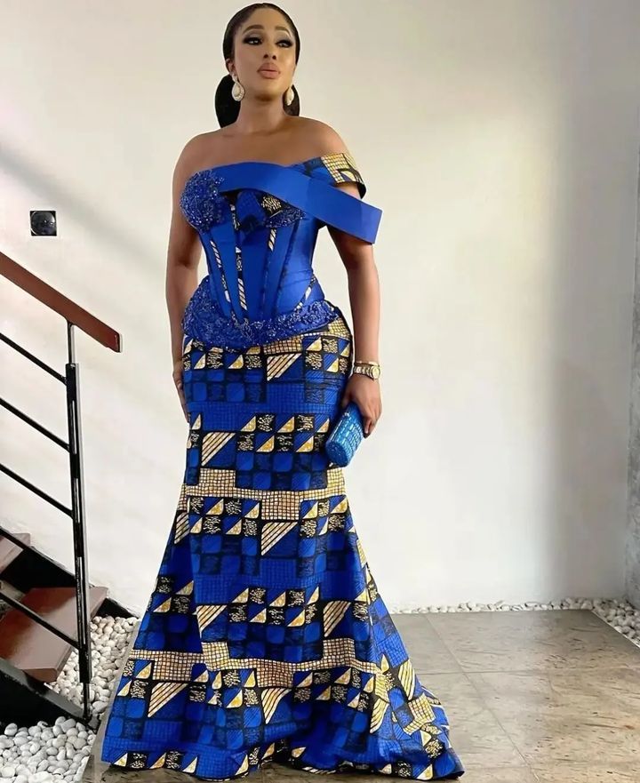 3. Mermaid Gown: For a more fitted and glamorous look, consider a mermaid-style Ankara gown. This style hugs the body and flares out at the bottom, creating a stunning hourglass silhouette.