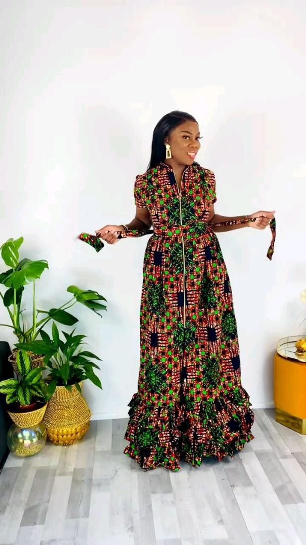 7. Tiered Gown: Consider a tiered Ankara gown for a playful and feminine style. The tiers can be created with different Ankara fabric patterns or colors, adding depth and visual interest to the gown.