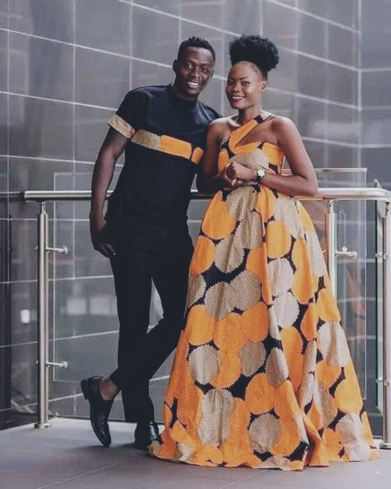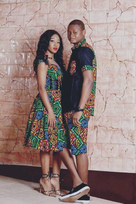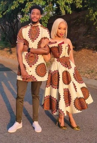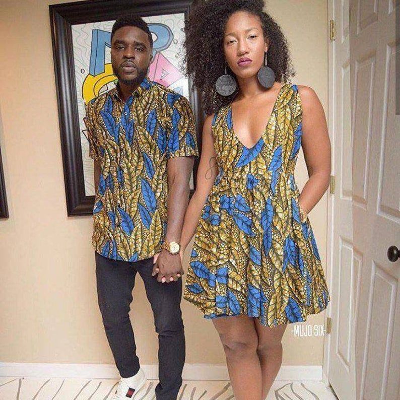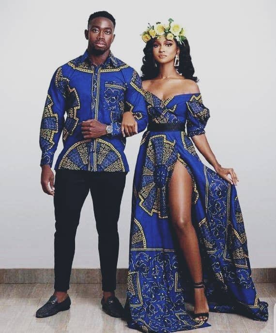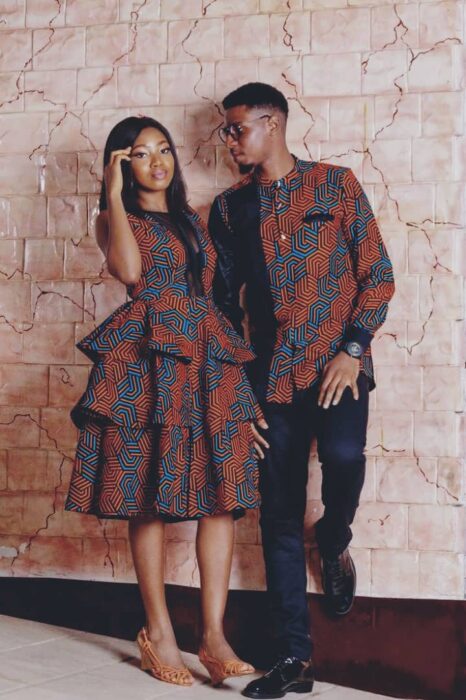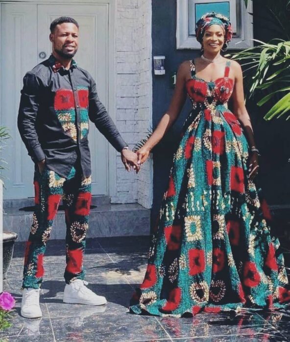 Capture attention with matching Ankara dresses for couples. Opt for complementary or identical prints and styles. Whether it’s a flowing maxi dress or a chic knee-length design, coordinating your Ankara dresses will make you both stand out and radiate togetherness.