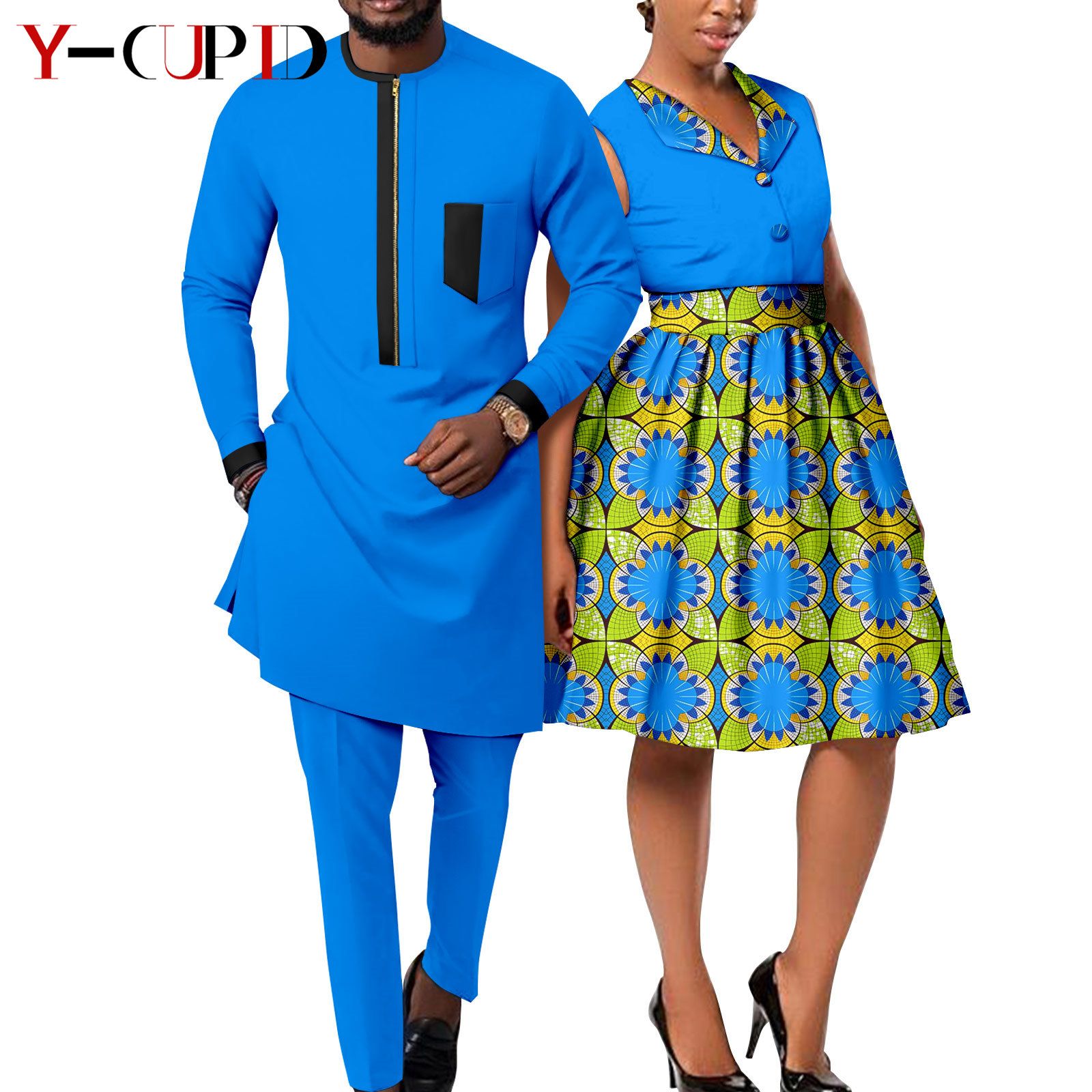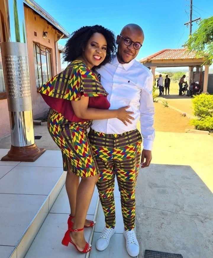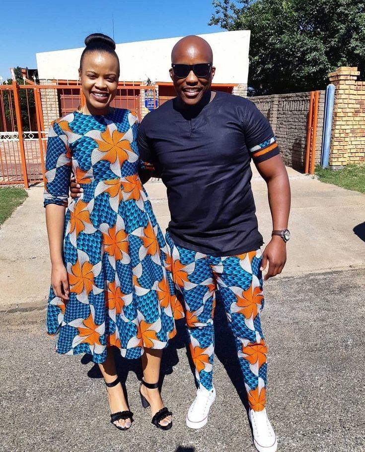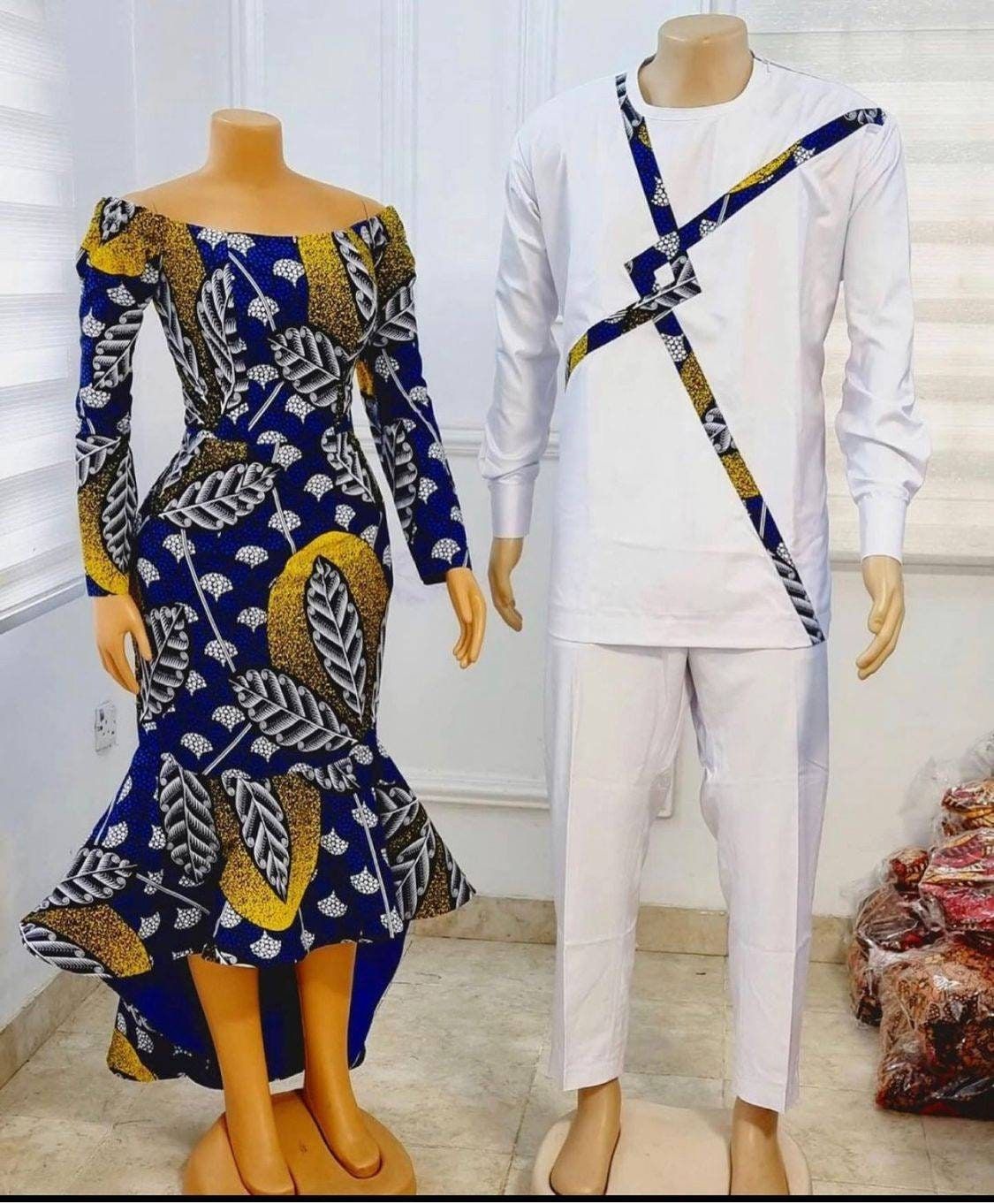 Capture attention with matching Ankara dresses for couples. Opt for complementary or identical prints and styles. Whether it’s a flowing maxi dress or a chic knee-length design, coordinating your Ankara dresses will make you both stand out and radiate togetherness.