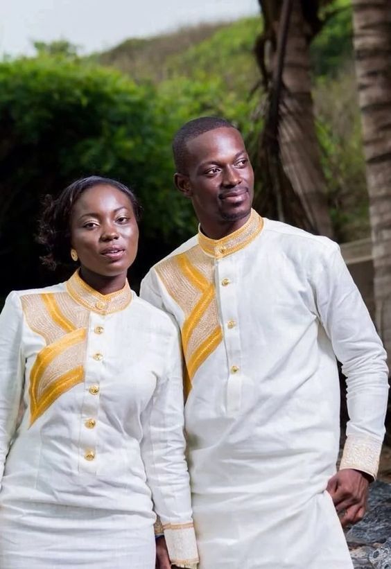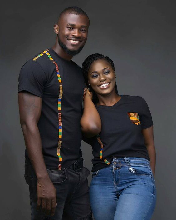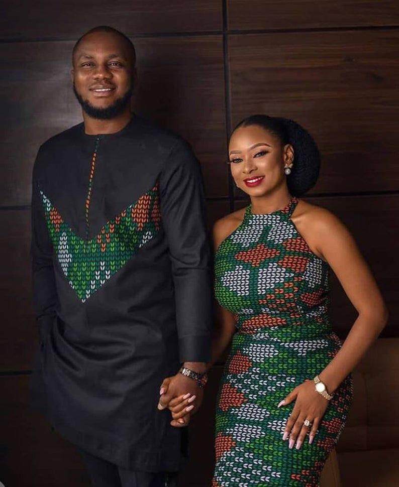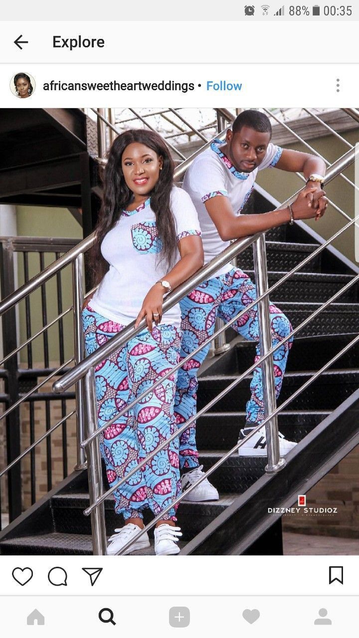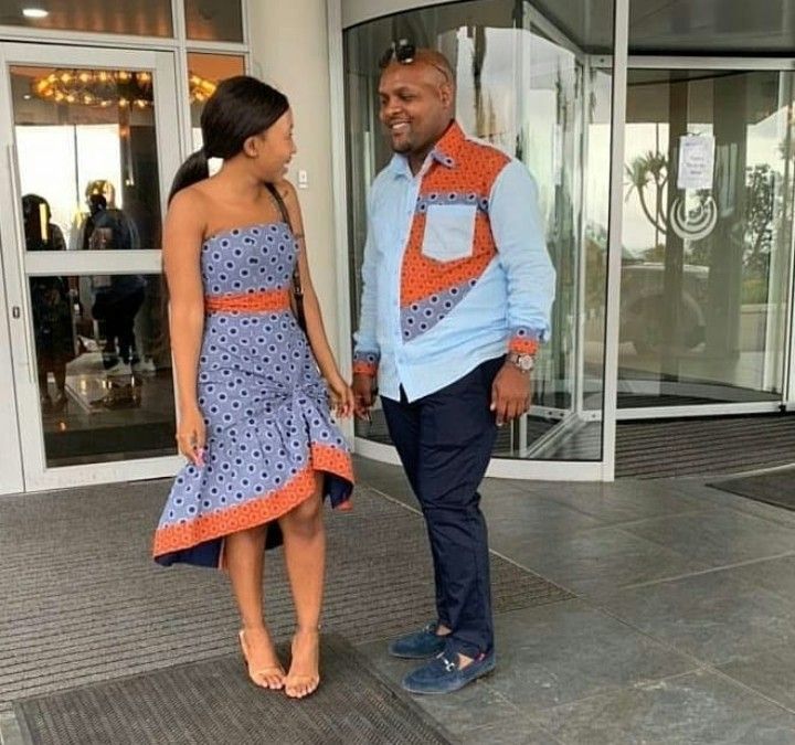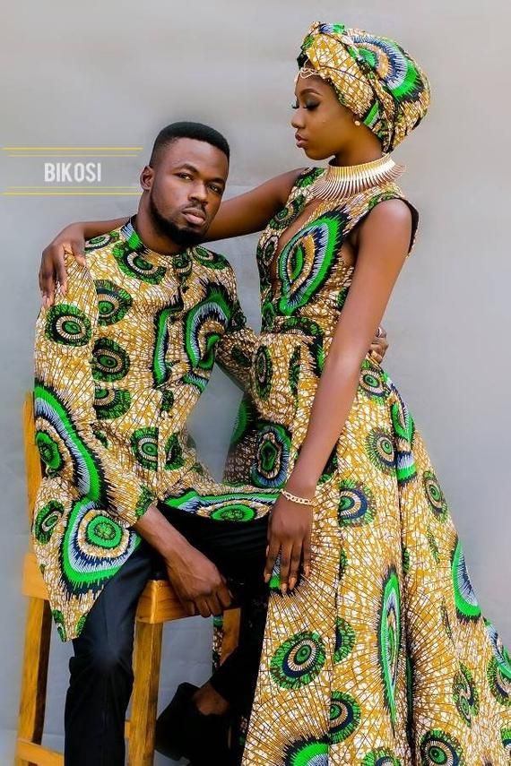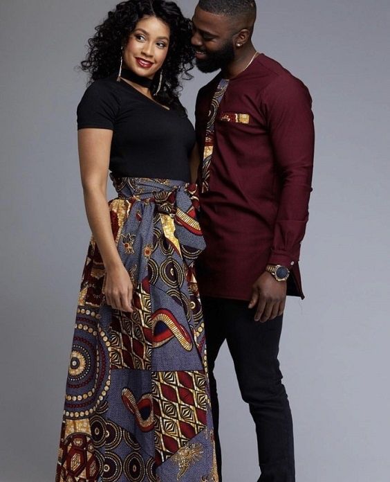 For a relaxed and casual vibe, consider Ankara couple’s shirts. These can be short-sleeved or long-sleeved button-down shirts featuring Ankara fabric as accents or all-over prints. Coordinate the colors and prints to achieve a cohesive look while expressing your couple style.