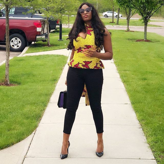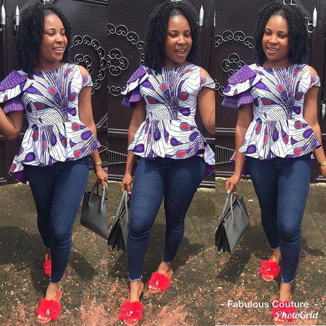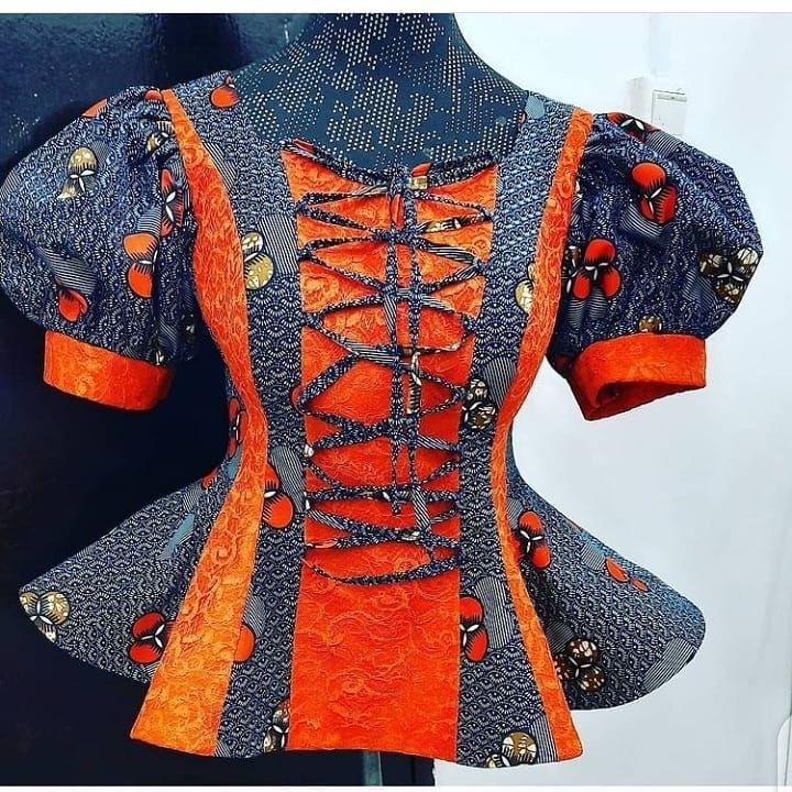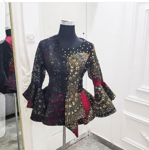 The peplum Ankara top is a classic style that has been popular for years. This top features a fitted bodice with a flared peplum at the waistline, giving it a feminine and flattering silhouette. The Ankara fabric adds a bold and colorful twist to this classic design, making it perfect for any occasion. You can pair it with a pencil skirt, jeans, or high-waisted pants to create a stylish and versatile look.