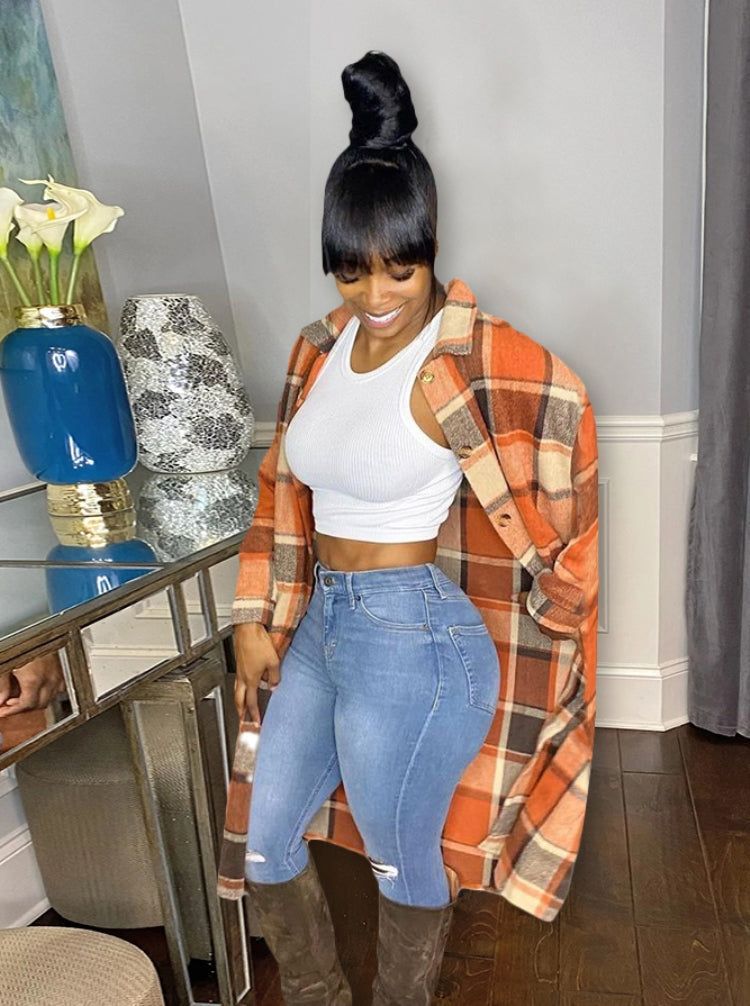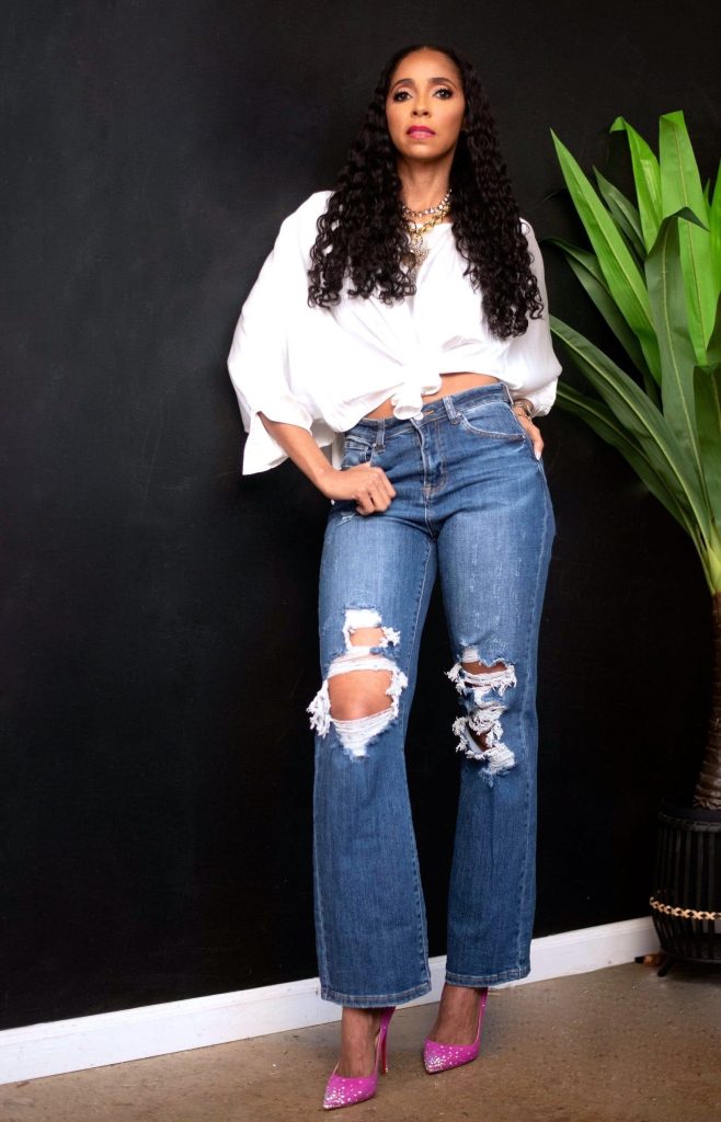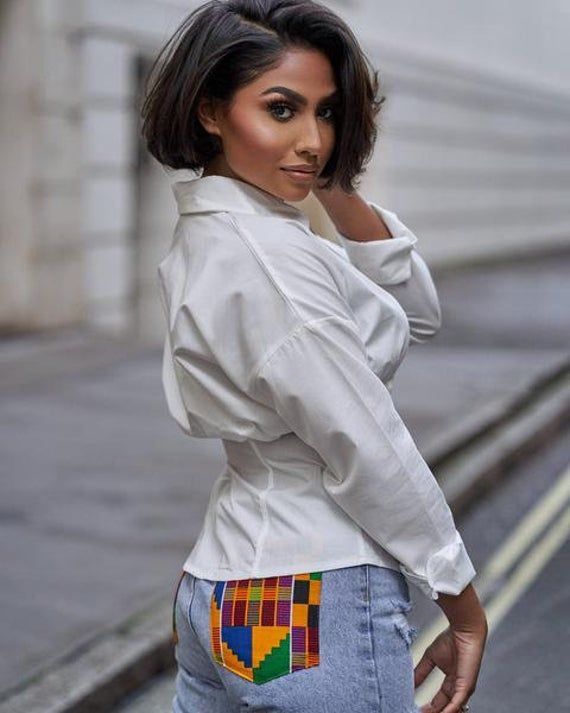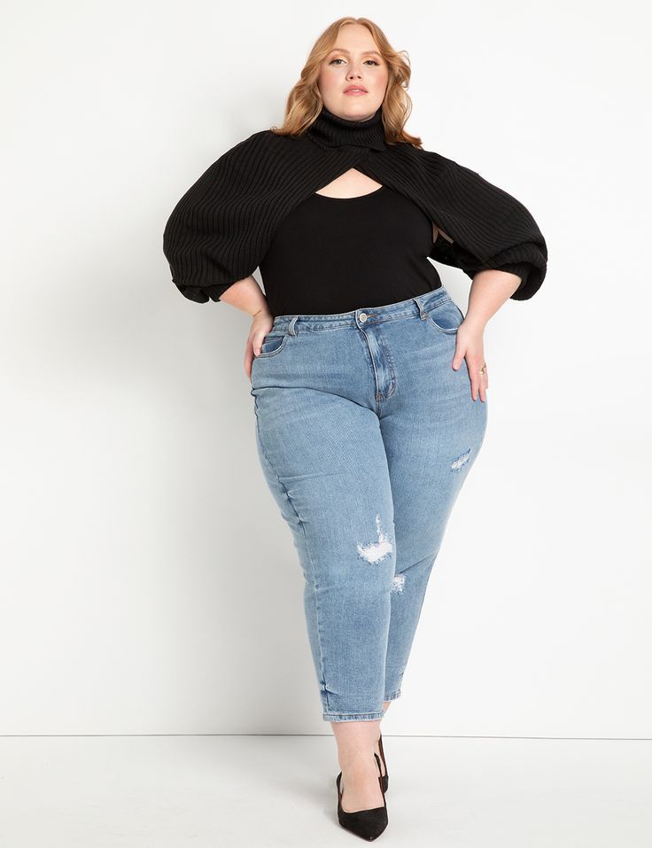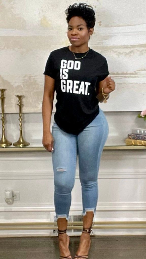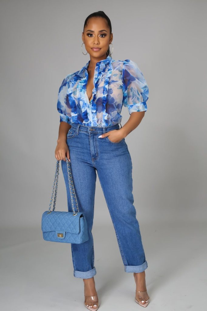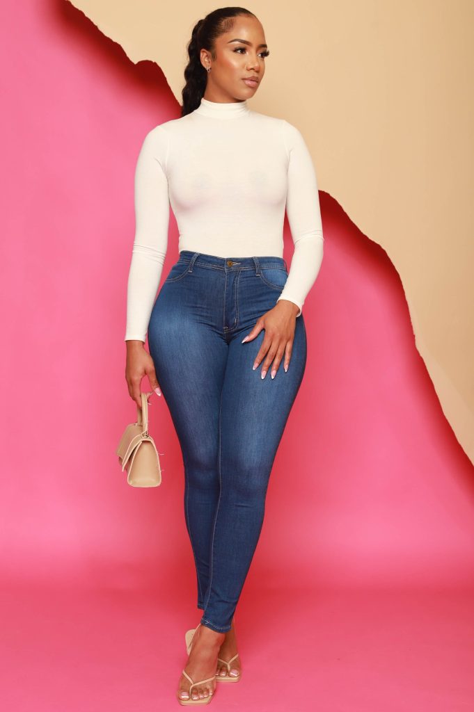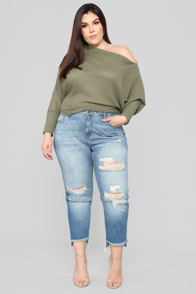 Embrace your curves with a pair of high-waisted jeans that cinch in at the waist and accentuate your figure. Pair them with a trendy crop top for a modern and fashionable look. This outfit is perfect for a summer day out or a date night. Add some heels and a statement clutch to elevate the outfit.