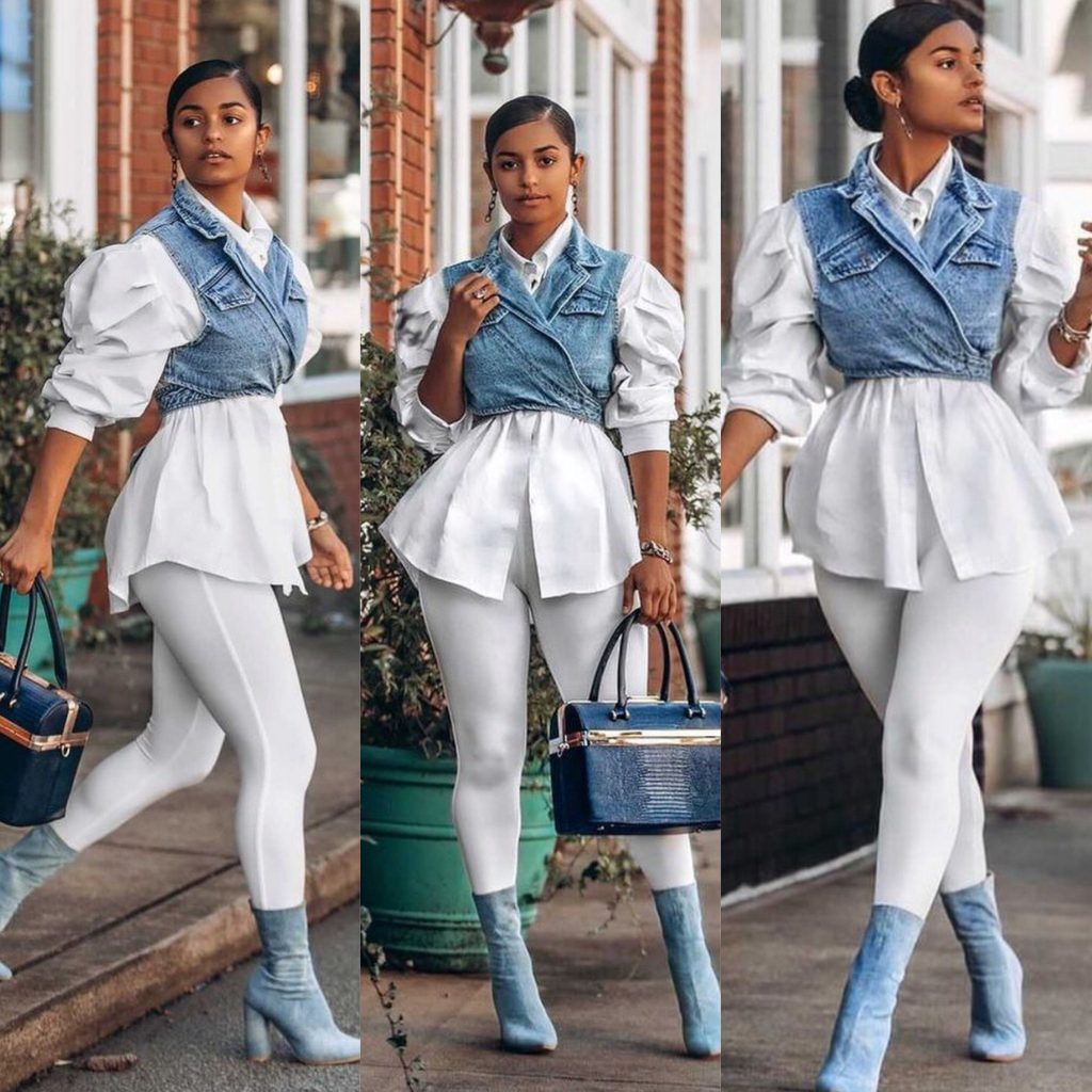 Nothing beats the timeless combination of a pair of well-fitted blue jeans and a crisp white shirt. This effortlessly chic look is perfect for a casual day at the office or a weekend outing with friends. Complete the outfit with some simple accessories and a pair of comfortable flats for a polished yet comfortable look.