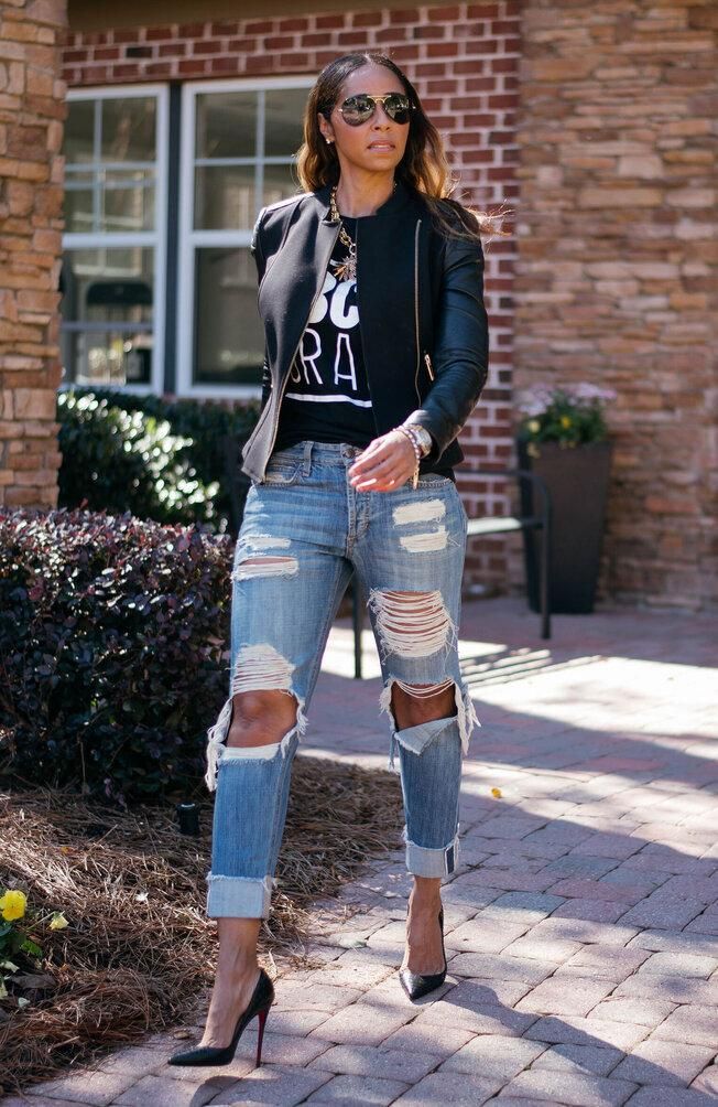 For a cool and edgy vibe, pair a distressed pair of jeans with a stylish denim jacket. This combination adds a touch of attitude to your outfit and is perfect for a casual night out or a music festival. Complete the look with a graphic t-shirt, ankle boots, and statement accessories for a rock-inspired style.