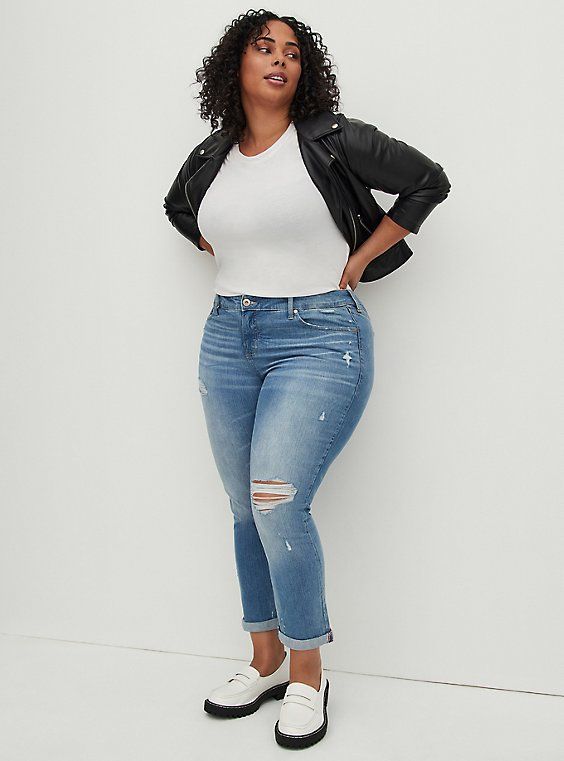 For a laid-back yet edgy look, pair your boyfriend jeans with a leather jacket. This combination creates a perfect balance between casual and chic and is perfect for a night out with friends or a concert. Finish the outfit with some ankle boots and statement accessories for a bold and confident appearance.