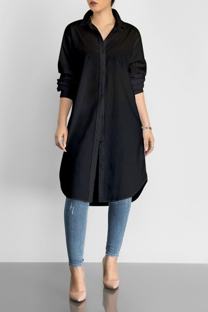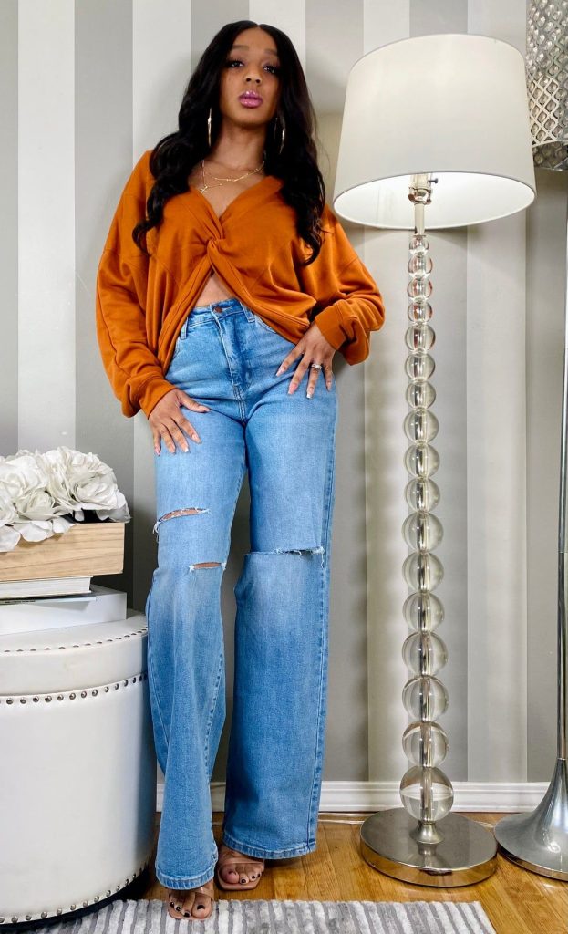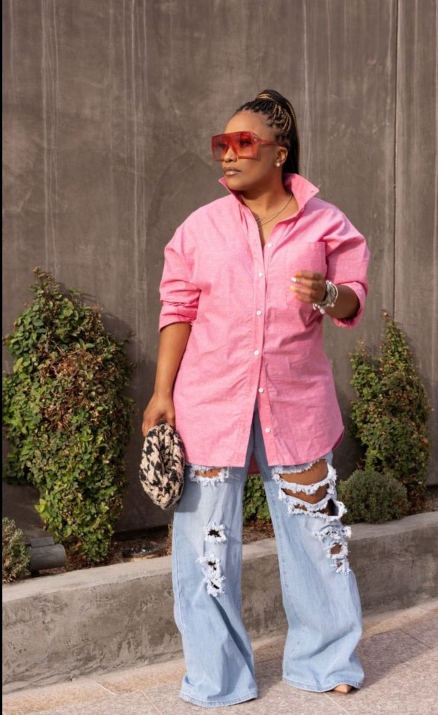 For a sophisticated and polished look, opt for a pair of wide-leg jeans and pair them with a button-up shirt. This outfit exudes elegance and can be worn for a business casual setting or a more formal event. Complete the look with some classic pumps and minimal jewelry for a refined appearance.