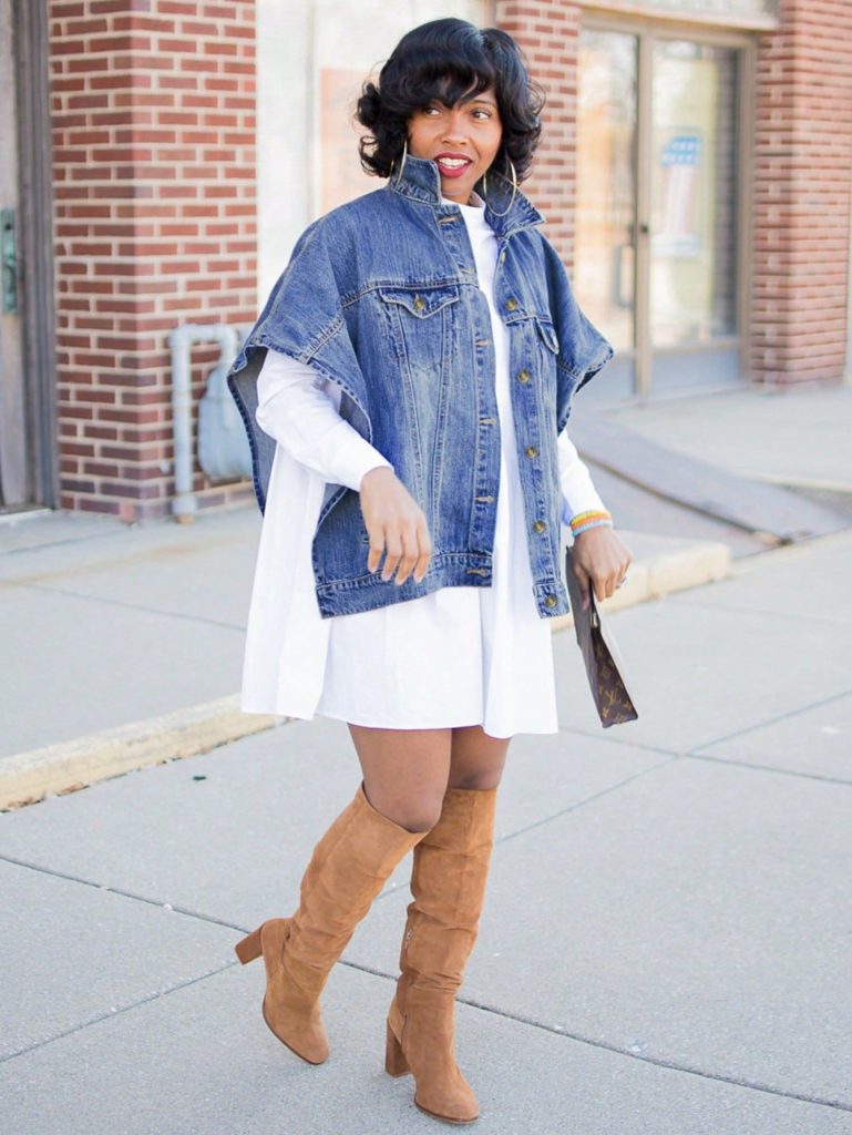 Create a trendy and coordinated look by pairing a denim skirt with a denim shirt. This double denim ensemble, also known as the “Canadian tuxedo,” is a fashion-forward choice that’s perfect for a casual day out or a brunch with friends. Complete the outfit with some white sneakers or ankle boots for a modern touch