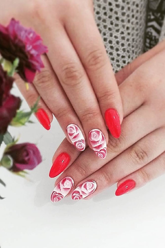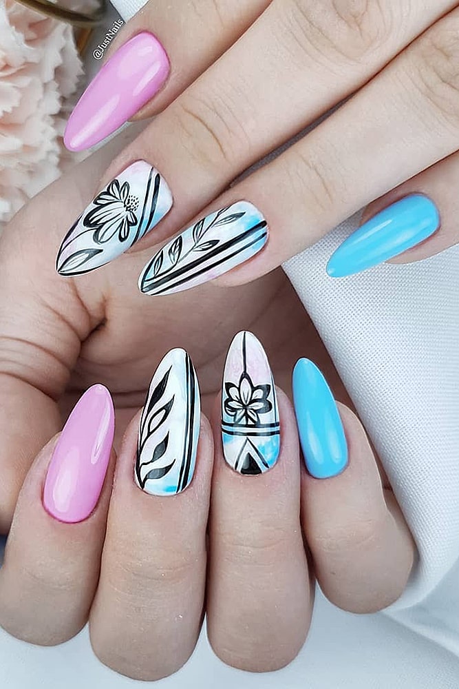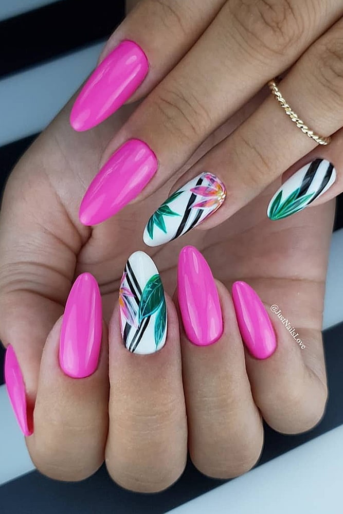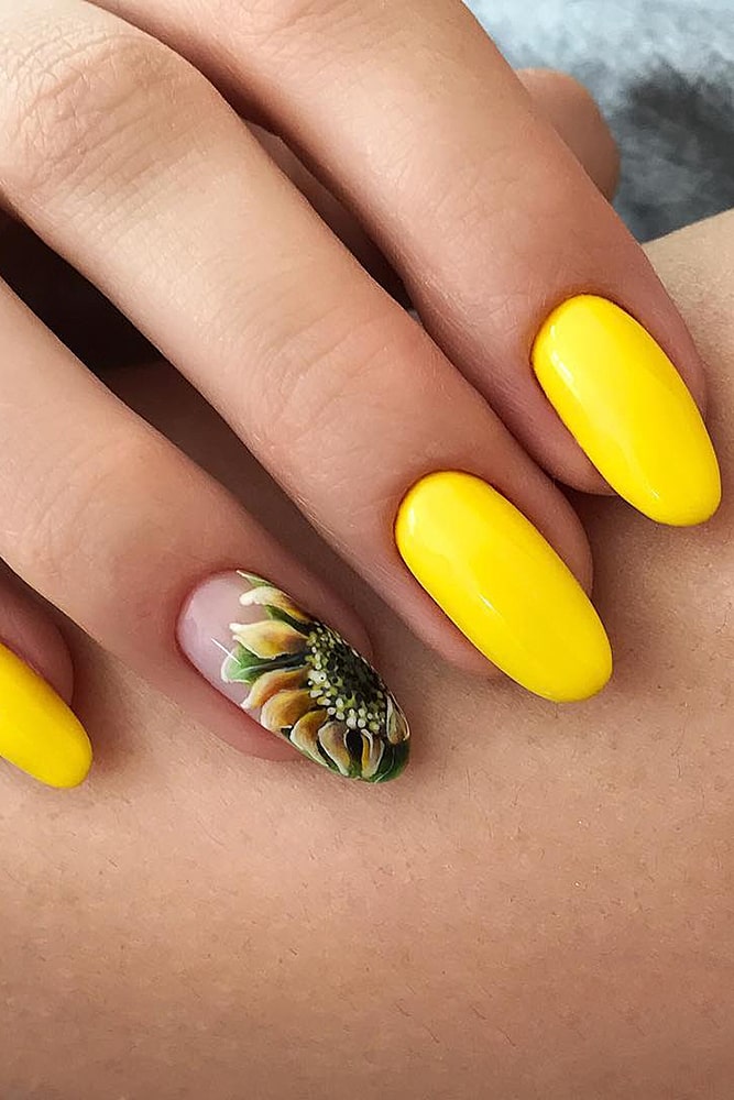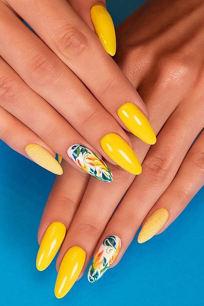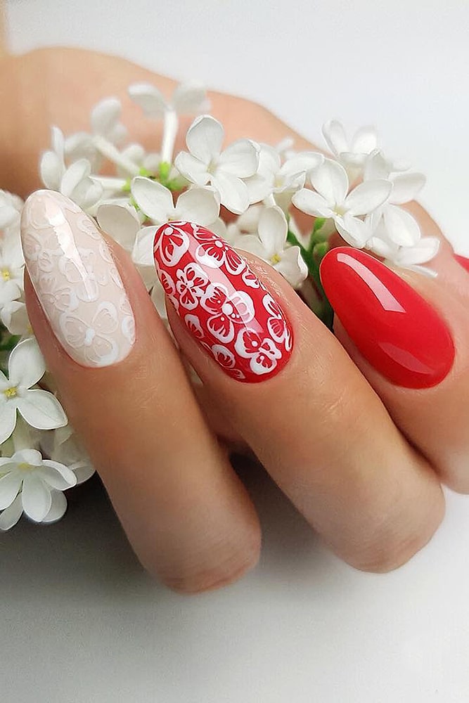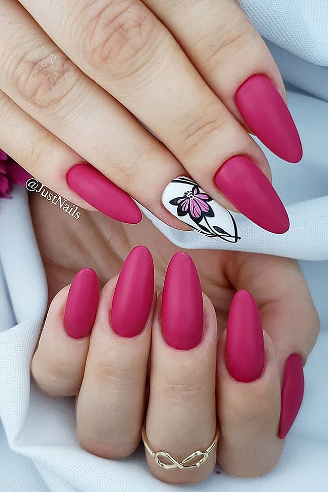 If you want to add colors – feel free to experiment. Yellow, red, turquoise – choose what you like. Just do not, probably, cover all the nails with floral painting – we risk getting a “slick” picture and nothing more. A monophonic coating and a floral accent on one or two nails look much better. This is a real beautiful manicure.
