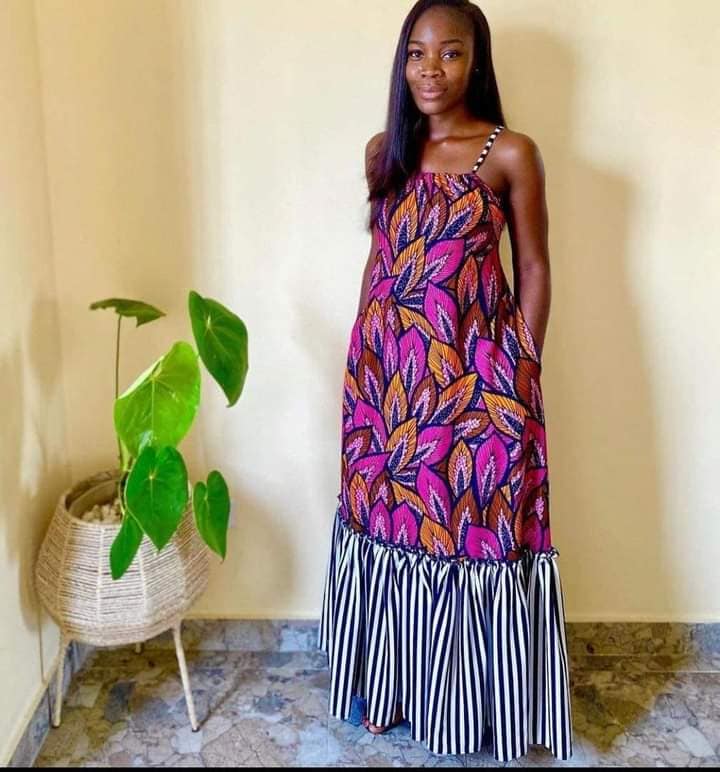 2. Ankara Maxi Dresses: Flowy and long, these dresses exude a bohemian or beachy vibe. With a range of prints and patterns to choose from, accessorizing with sandals and statement jewelry completes the look.