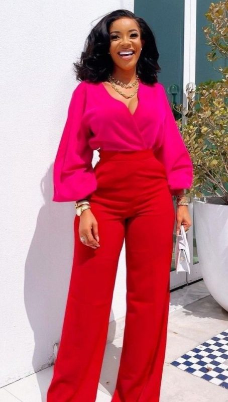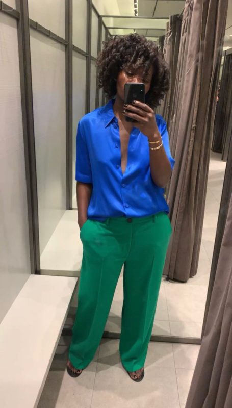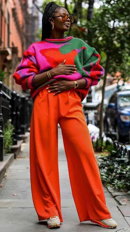 5. Color-Block Outfit: Create a color-blocked look by pairing bold and contrasting colors together. For example, combine a hot pink blouse with a bright orange skirt or pair a cobalt blue blazer with lemon yellow trousers. Balance the outfit with neutral accessories.