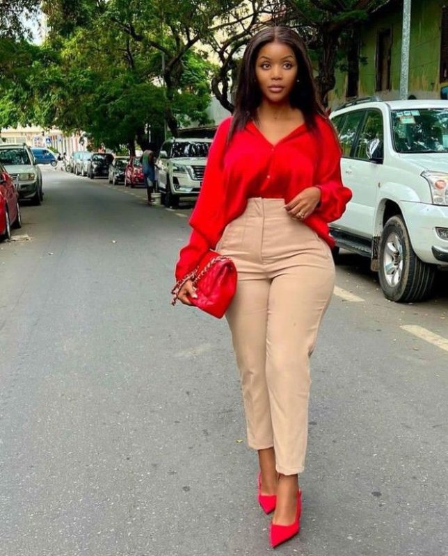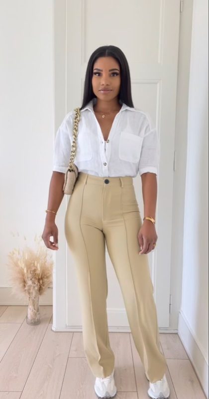 1. Bright Blouse with Tailored Trousers: Pair a brightly colored blouse, such as a coral or electric blue, with tailored trousers in a neutral shade like black or gray. This combination allows the blouse to be the focal point of the outfit while maintaining a polished and professional appearance.