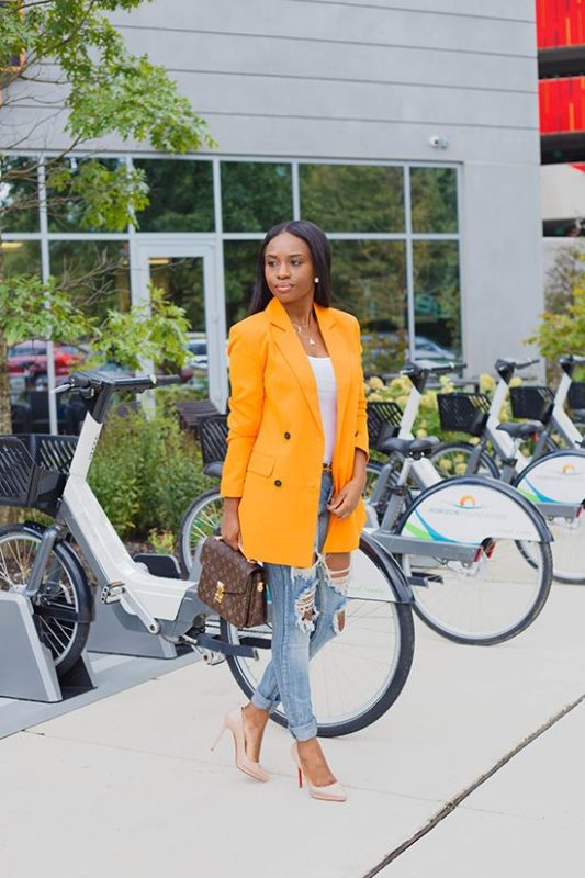 4. Colorful Statement Piece: Choose a colorful statement piece as the focal point of your outfit. It could be a bright blazer, a colorful pair of pants, or a vibrant blouse. Pair it with neutral pieces to balance the look and let the statement piece shine.