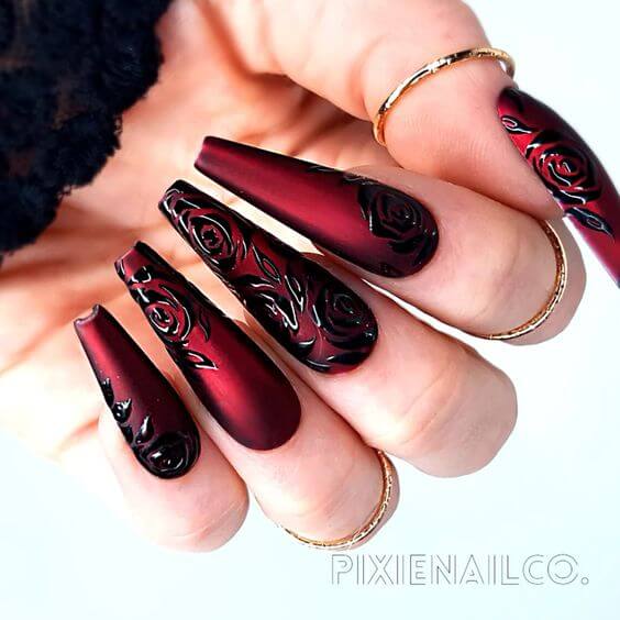 A quick and simple method to jazz up your nails is using bright colors. One of the most popular is red. There are so many lovely shades of red that you may use on your nails, including some dark hues for individuals who prefer muted hues. The possibilities for nail art are endless, and today we’re showing you 20 gorgeous ways to use red coffin nails. The coffin nail shape is used for all of these designs since it can be made in both long and short lengths and is simple to wear. So, take a look and get some nail inspiration.