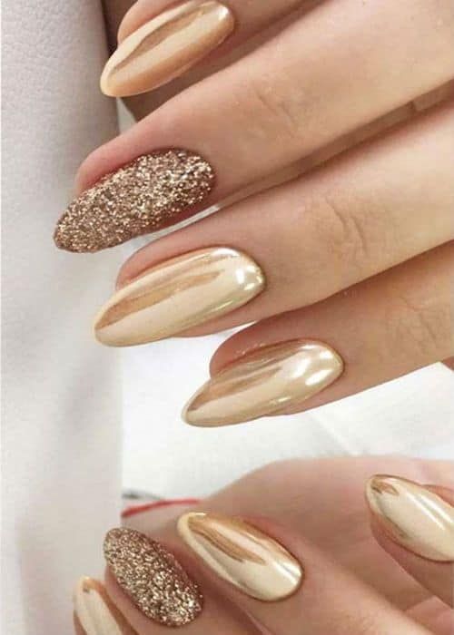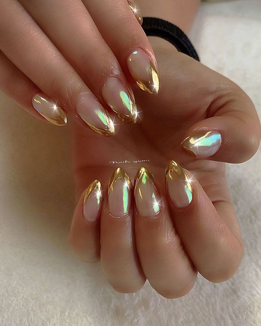 Choose a gold holographic polish that changes hue and intensity with light for a mesmerizing effect.
