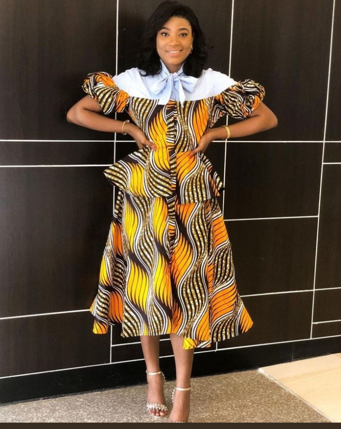 A gown with bishop sleeves gives a romantic and vintage touch to the modern Ankara patterns.