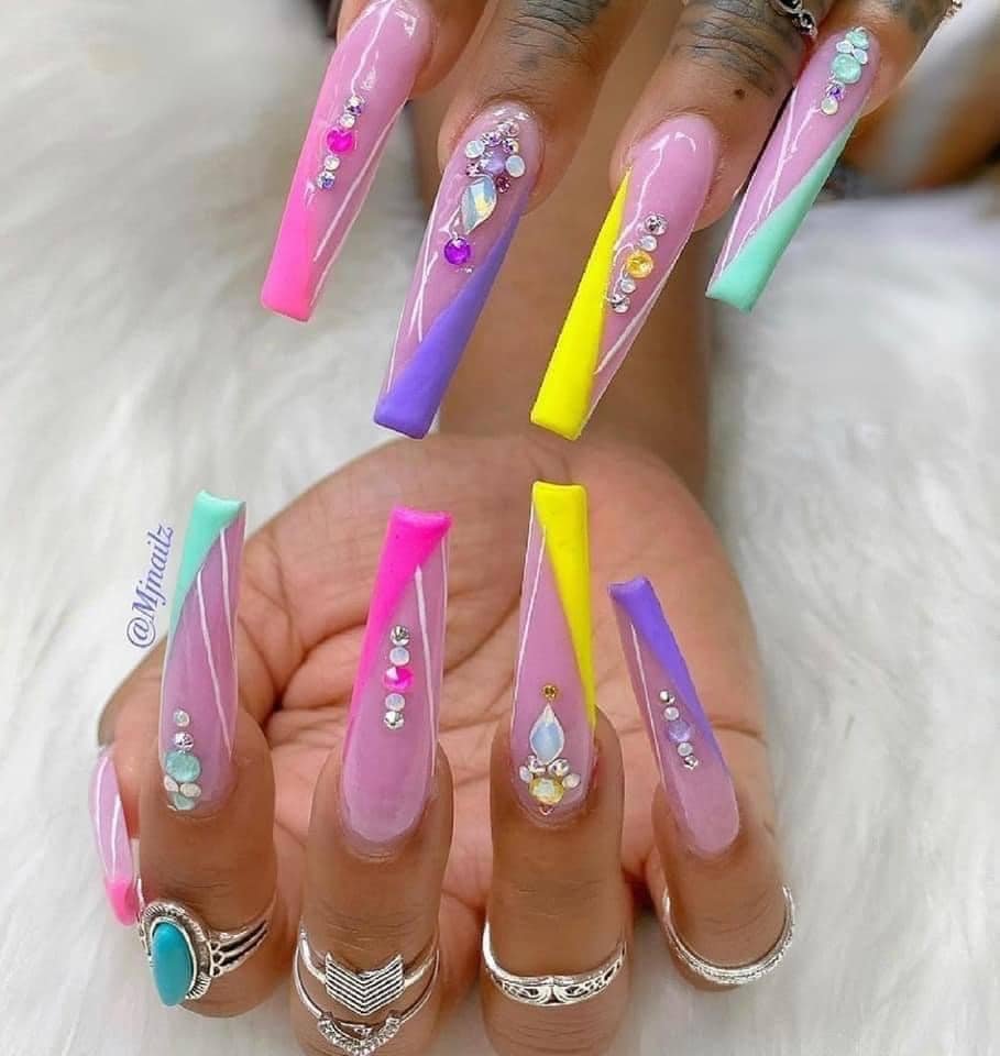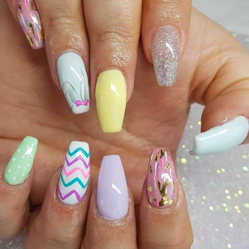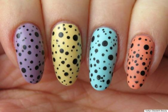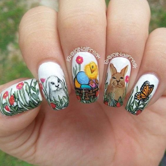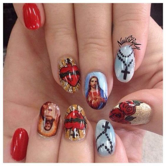 Nails rocked in this period reflect the mood of the Easter celebration. The nails are shiny no doubt but modest and very colorful. They tend not to be long and some bears the design of Jesus Christ.