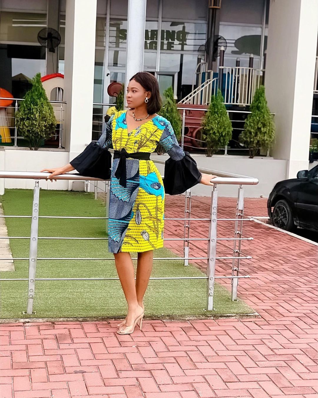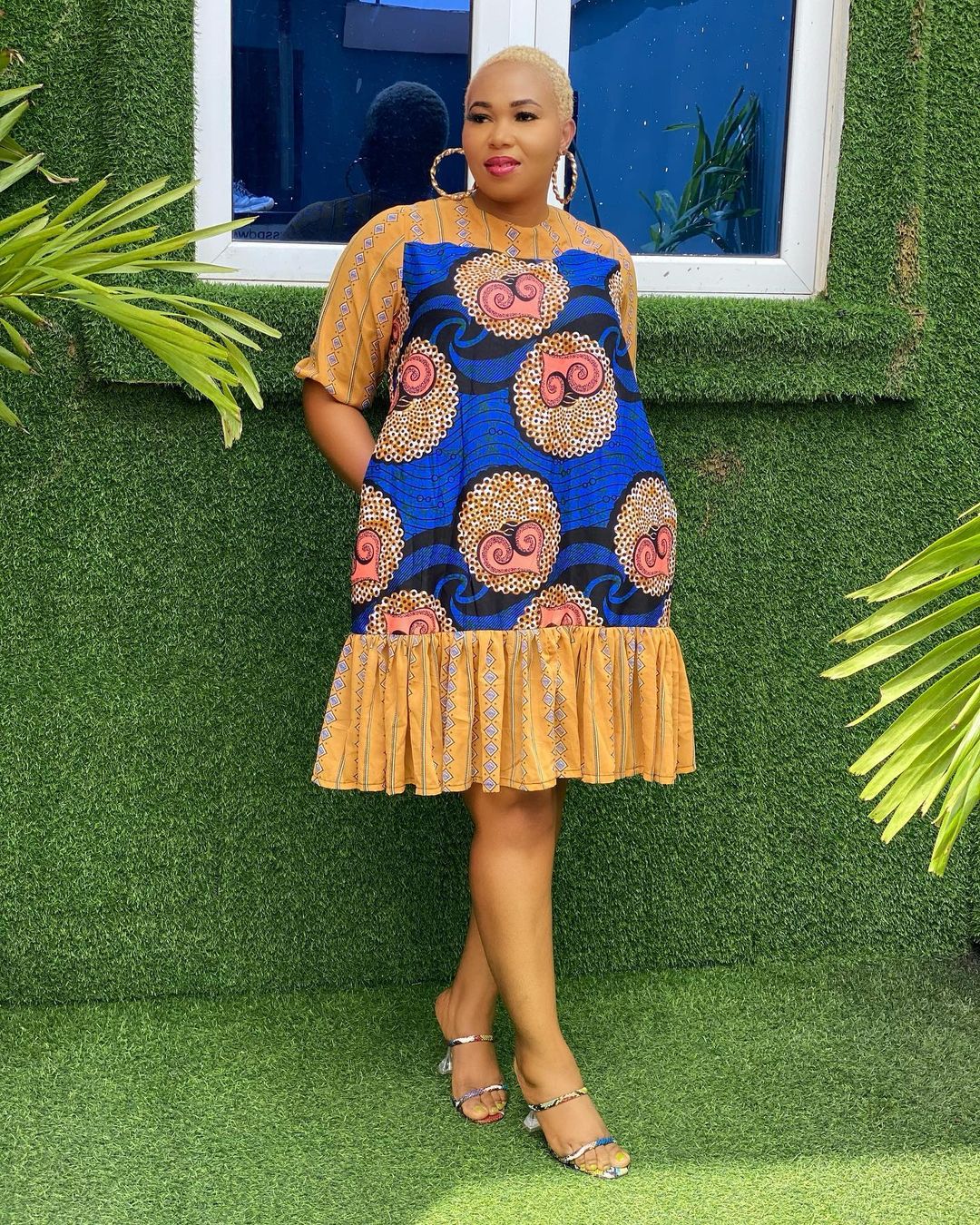 Embrace eclectic charm by wearing an Ankara mix print midi dress, celebrating the artistry of combining different Ankara prints in one piece.