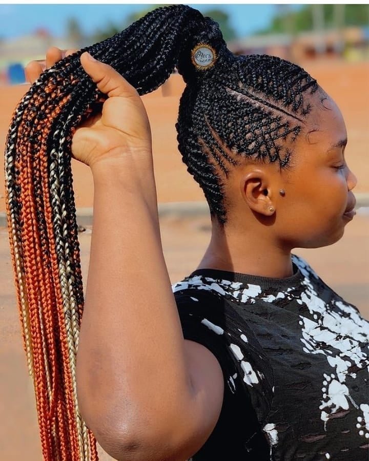 4. Ghana Braids: Ghana braids, also known as Ghanaian cornrows, are chunky and well-defined braids that are usually braided close to the scalp. They can be styled in various patterns and are popular for their durability.