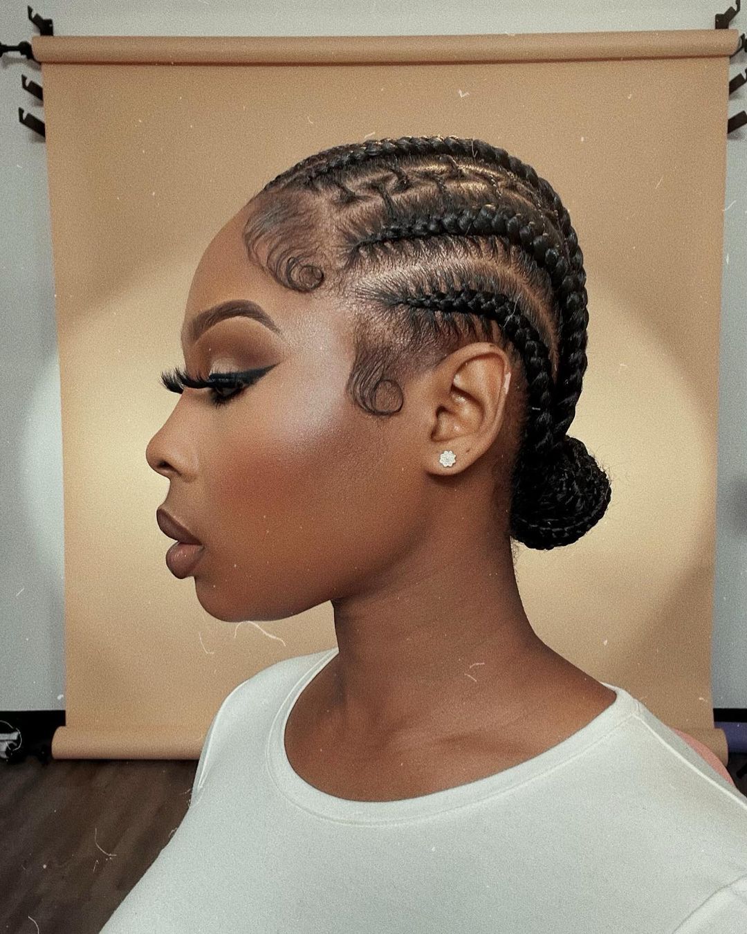Transform your straight back cornrows into an elegant updo or a high bun. This sophisticated style is perfect for formal events or a night out.