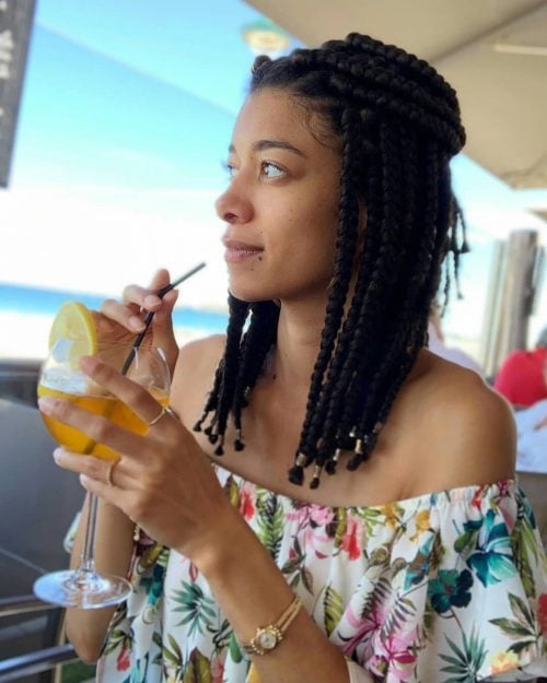 6. Medium Box Braids with Colored Extensions: Infuse your braids with colorful extensions for a playful and eye-catching hairstyle that reflects your personality.