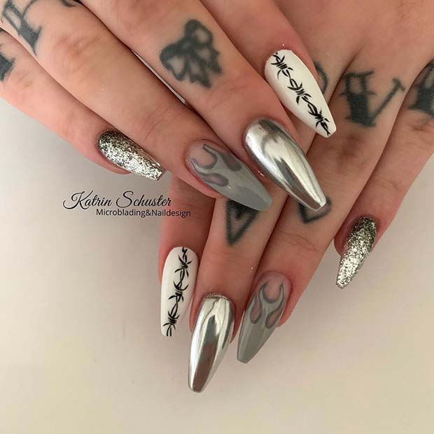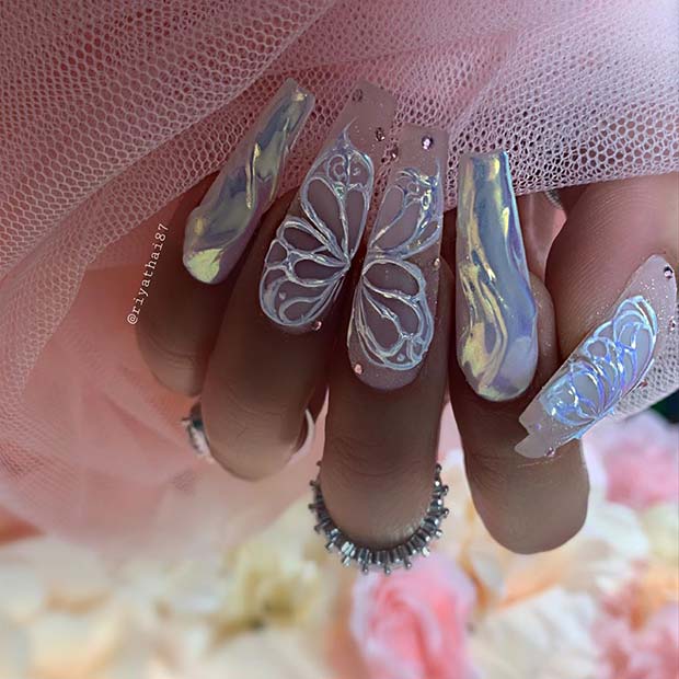 Pour vous donner de l’inspiration pour les ongles en argent, nous avons 23 des meilleurs ongles en argent. Vous trouverez des paillettes, des papillons, des cœurs et même de subtiles manucures. Jetez un œil pour vous inspirer ! Vous pouvez même en essayer certains vous-même pour votre prochain projet de nail art DIY.