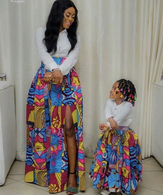 2. Ankara Skirts and Tops: If dresses aren’t your thing, consider matching Ankara skirts paired with complementary tops. You could opt for high-waisted skirts for yourself and playful, twirly skirts for your little girl.